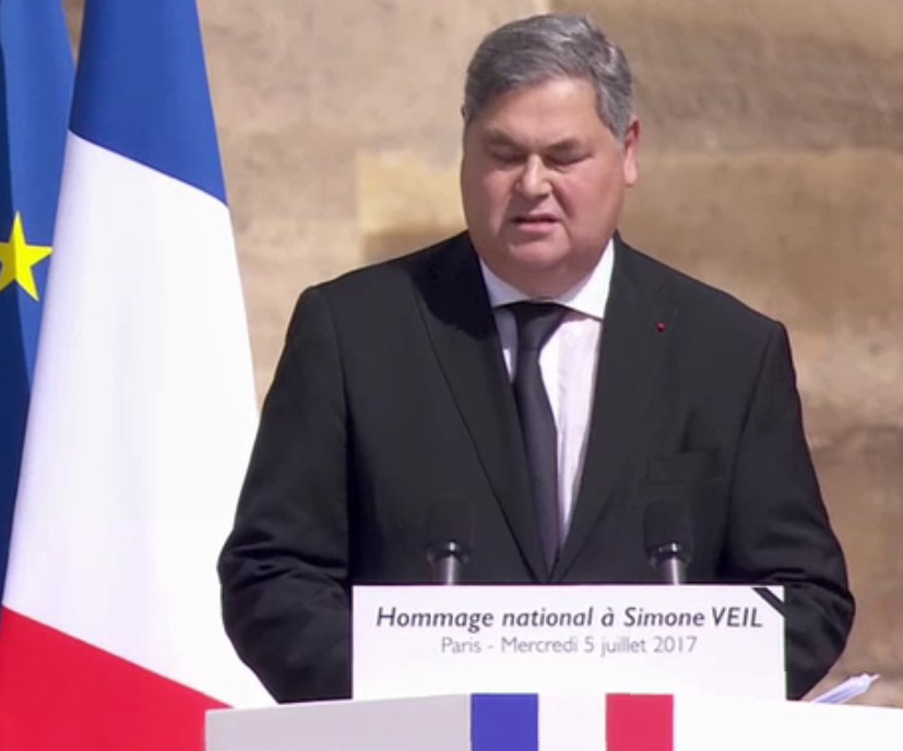 Son discours avait été précédé par ceux des fils de Simone Veil. L’avocat Jean Veil a été le premier à lui rendre hommage en rappelant la « tragédie indélébile » dont a été victime sa famille : « le voyage dans les wagons à bestiaux, la tonte des cheveux, la faim, le froid, l’odeur pestilentielle des corps qui brûle ».