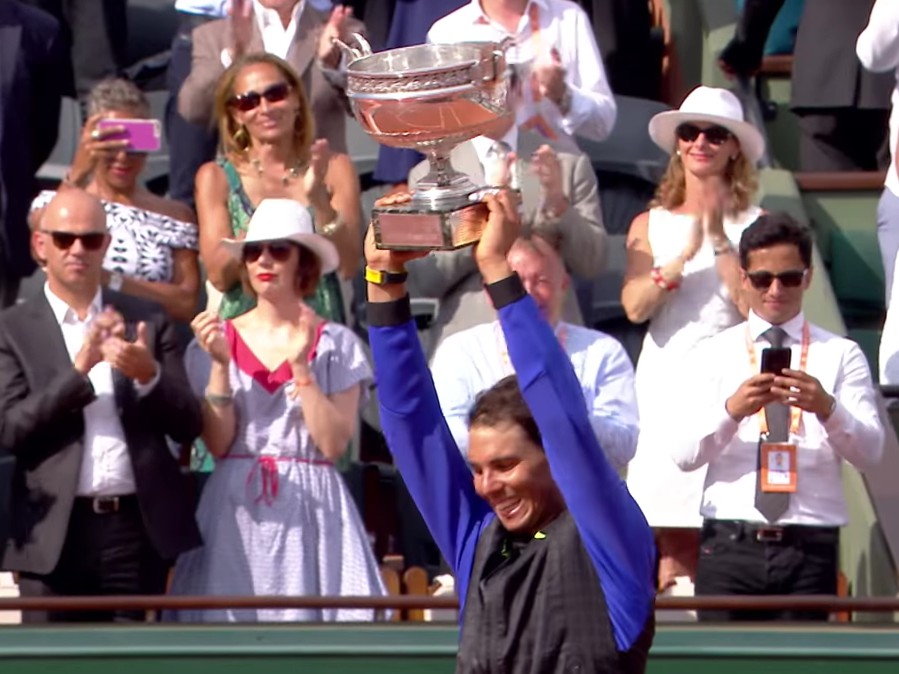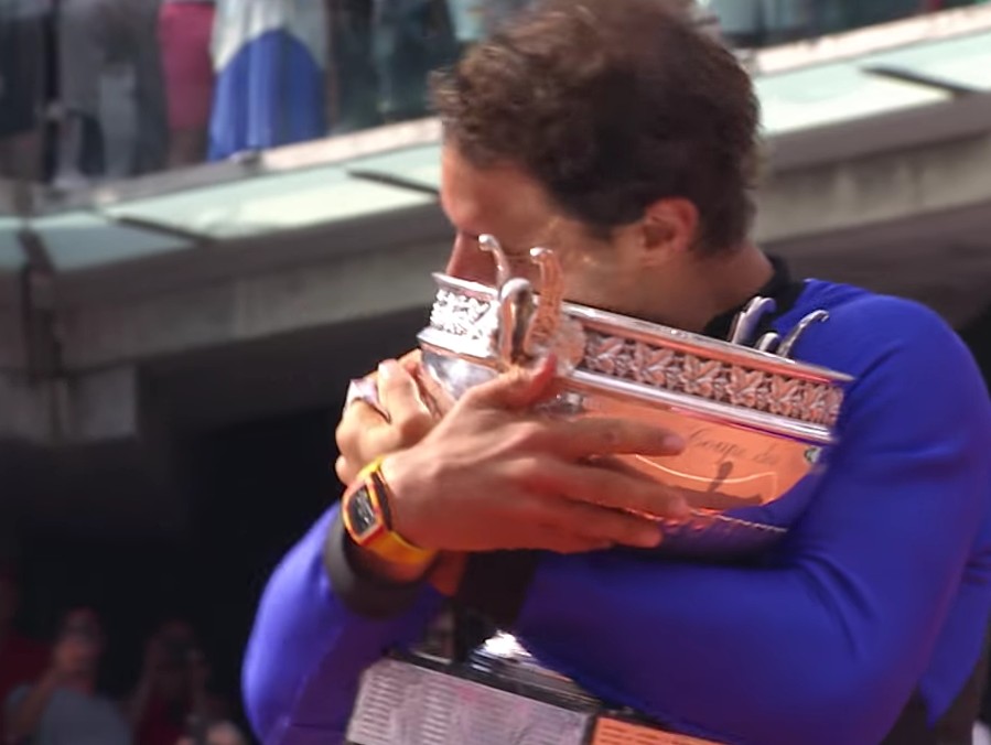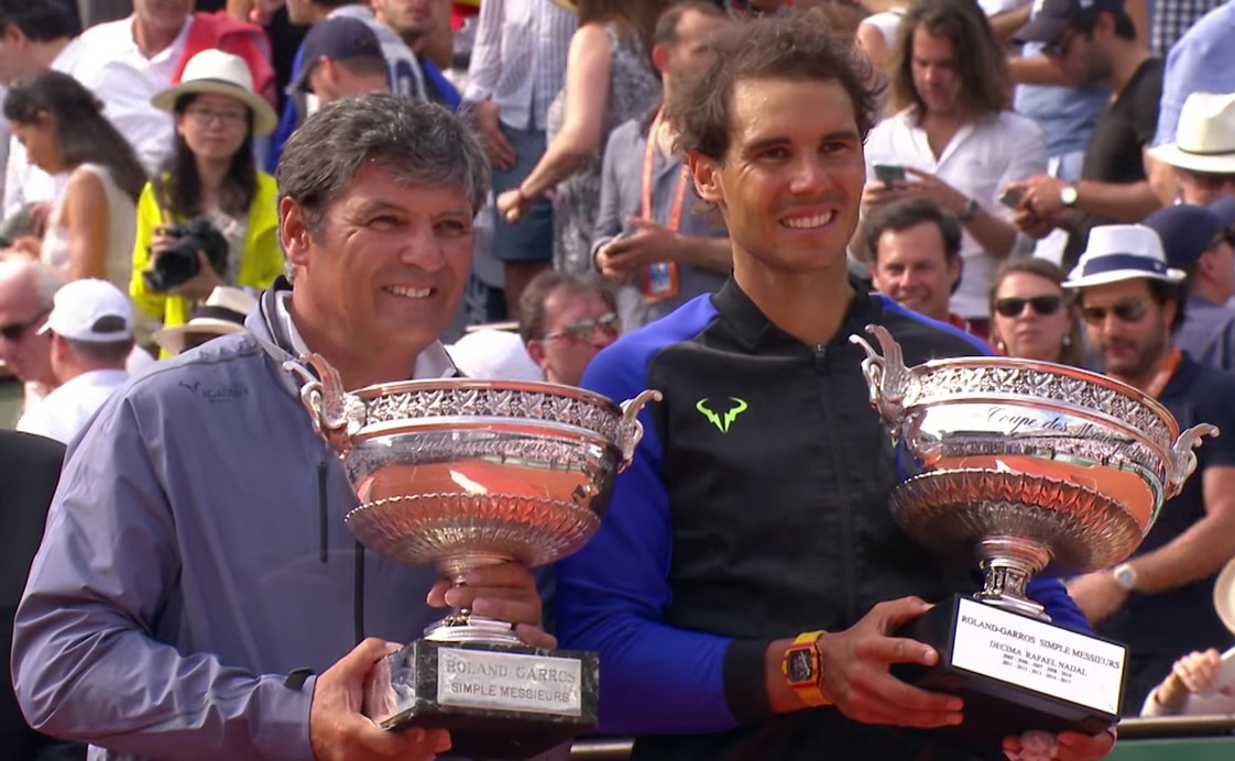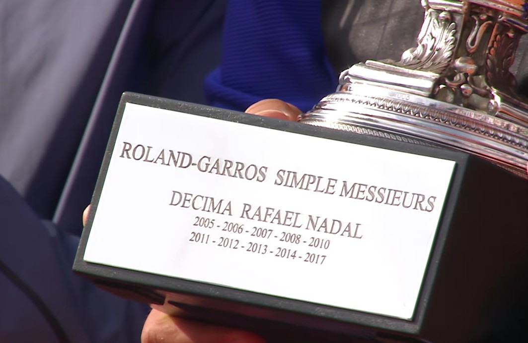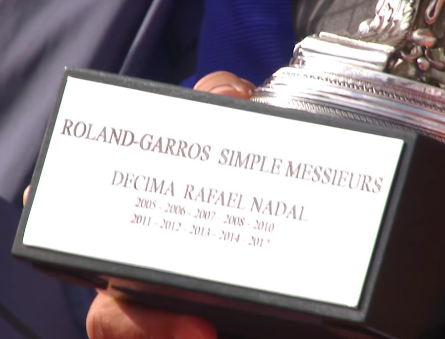 Après sa victoire, Nadal remercie en français ses supporters puis son oncle et entrai^neur Toni Nadal vient lui remettre une réplique de la coupe des Mousquetaires gravée à son nom.