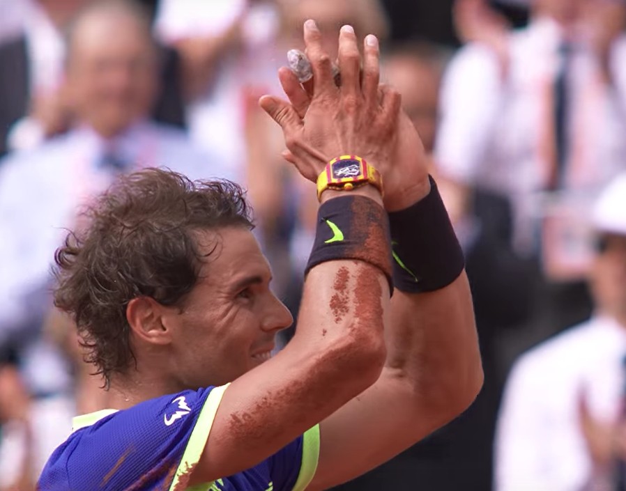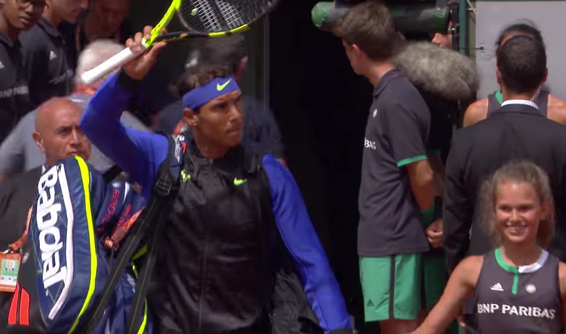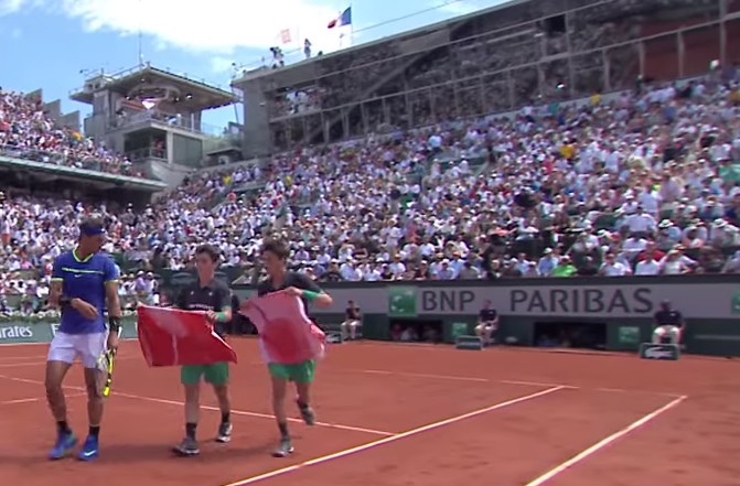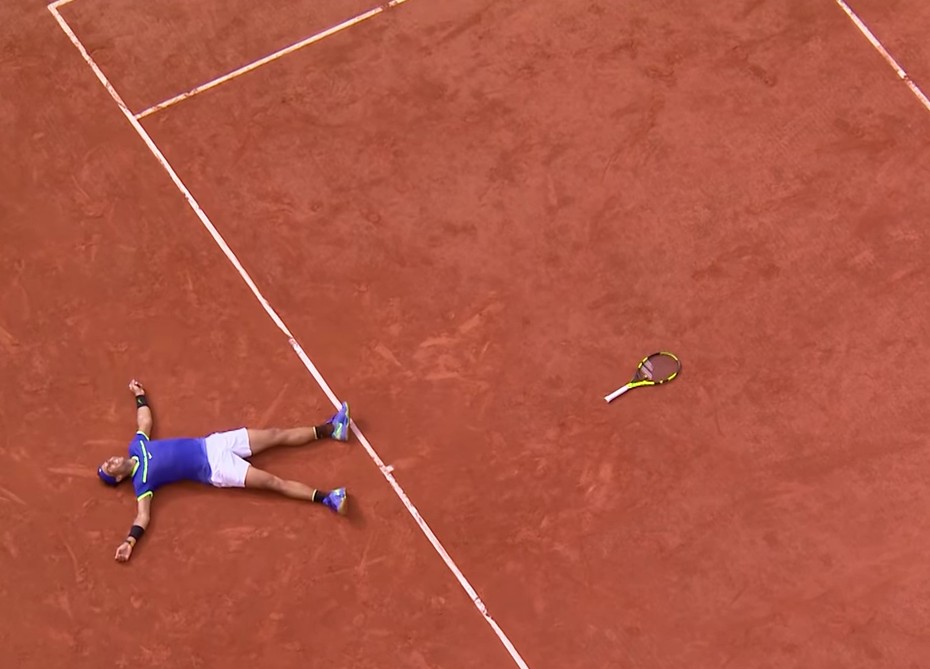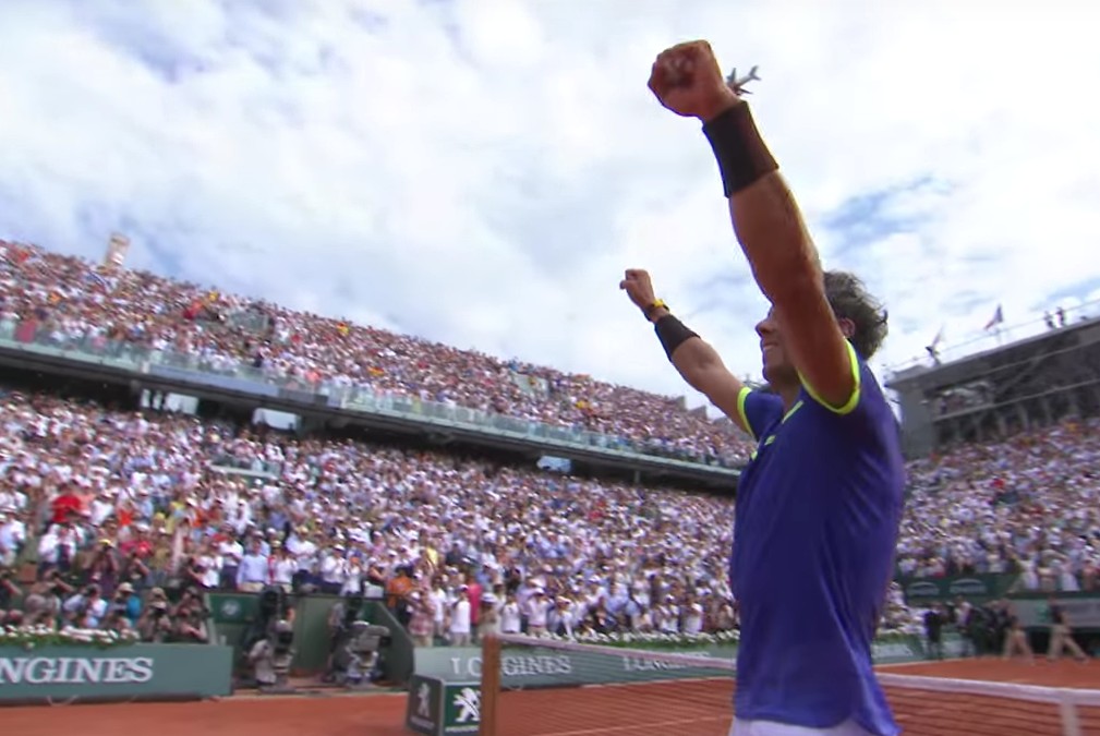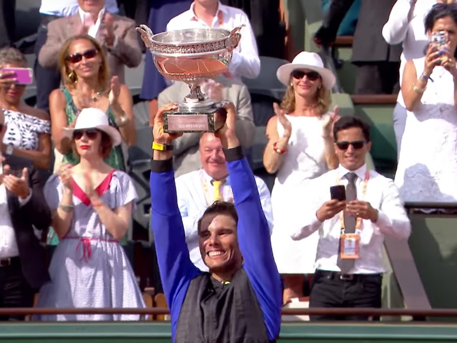 Après sa victoire, Nadal remercie en français ses supporters puis son oncle et entrai^neur Toni Nadal vient lui remettre une réplique de la coupe des Mousquetaires gravée à son nom.