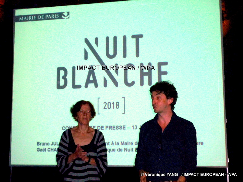 Bruno Juillard, premier adjoint de la Maire de Paris et Gael Charbau, directeur artistique de la prochaine édition de « Nuit Blanche » ont présenté mercredi 13 juin au Théâtre Paris Villette (19ème) les grandes lignes de la 17ème édition de « Nuit Blanche » ainsi que le visuel réalisé par Samuel Trenquier.