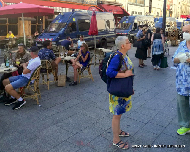 La veille, des dizaines de contestataires s’étaient réunis sur des « terrasses sauvages » pour montrer leur opposition aux décisions du gouvernement. Ils avaient organisé ces « apéro en musique » de manière festive, suite aux applications du 9 (bars, restos, cinés, musées,…) et du 16 août (centres commerciaux, parcs d’attraction,…). Toutefois, les nombreuses forces de l’ordre, présentes sur place, ont du intervenir pour faire plier les tables et disperser les contrevenants.