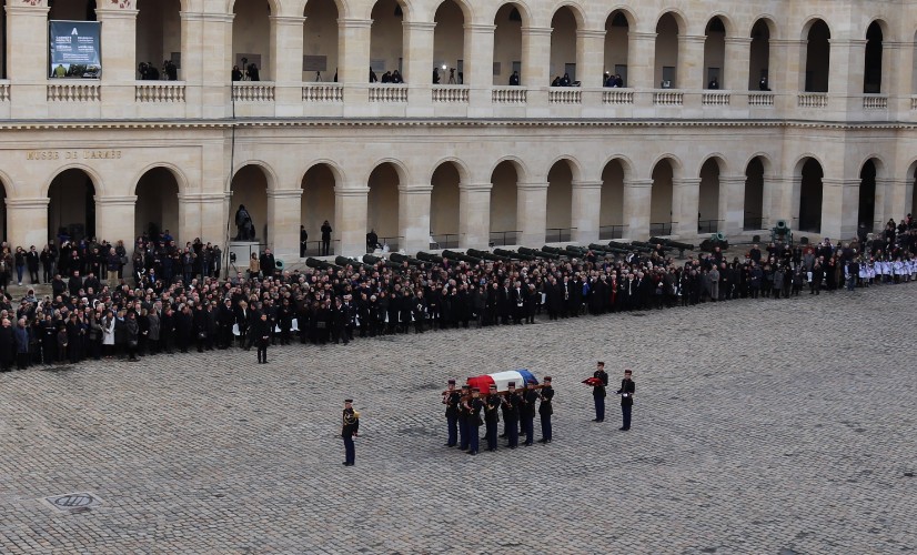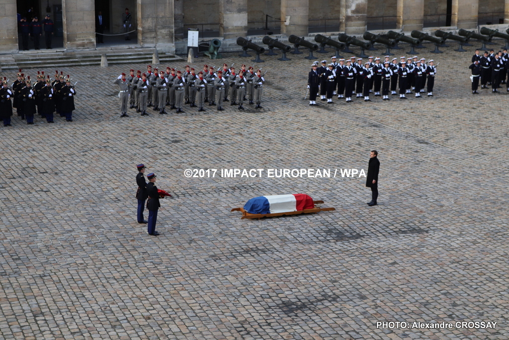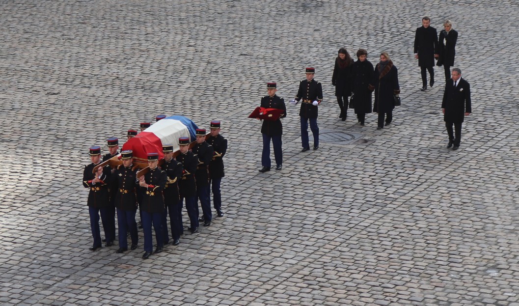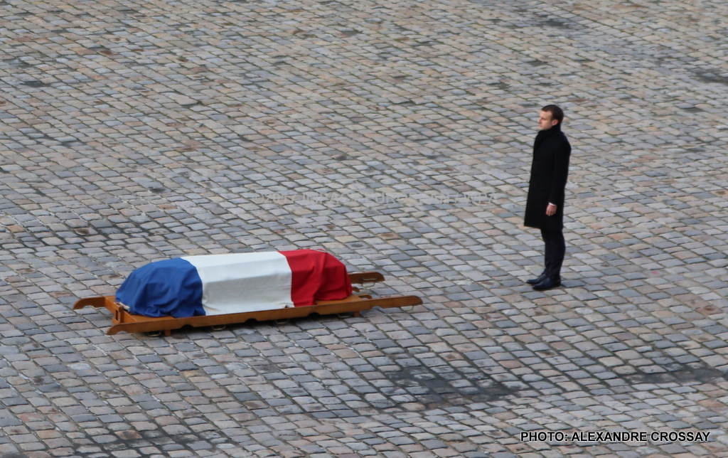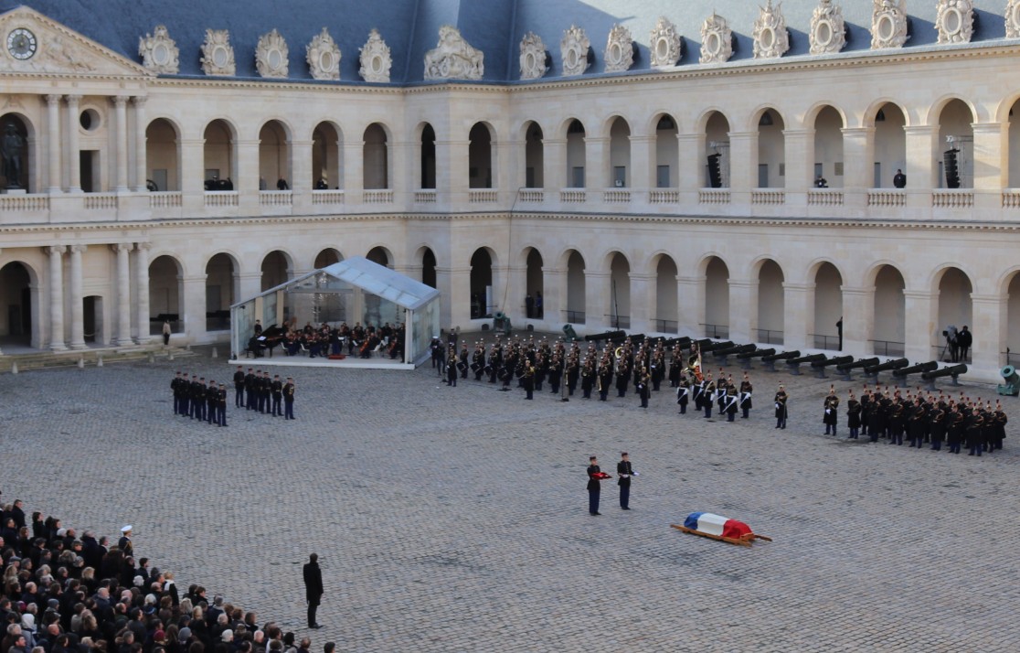 Face au cercueil de l’académicien recouvert du drapeau tricolore, le président français a évoqué «l’essence même de la France: l’amour de la littérature et l’amitié pour les écrivains» et «ce que la France a de plus beau et de plus durable: la littérature», le chef de l’État a déposé « un simple crayon à papier » sur le cercueil de l’académicien.