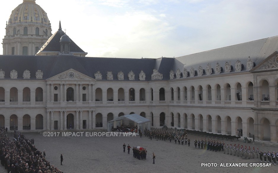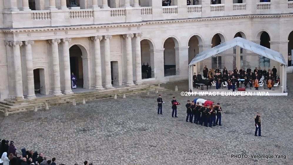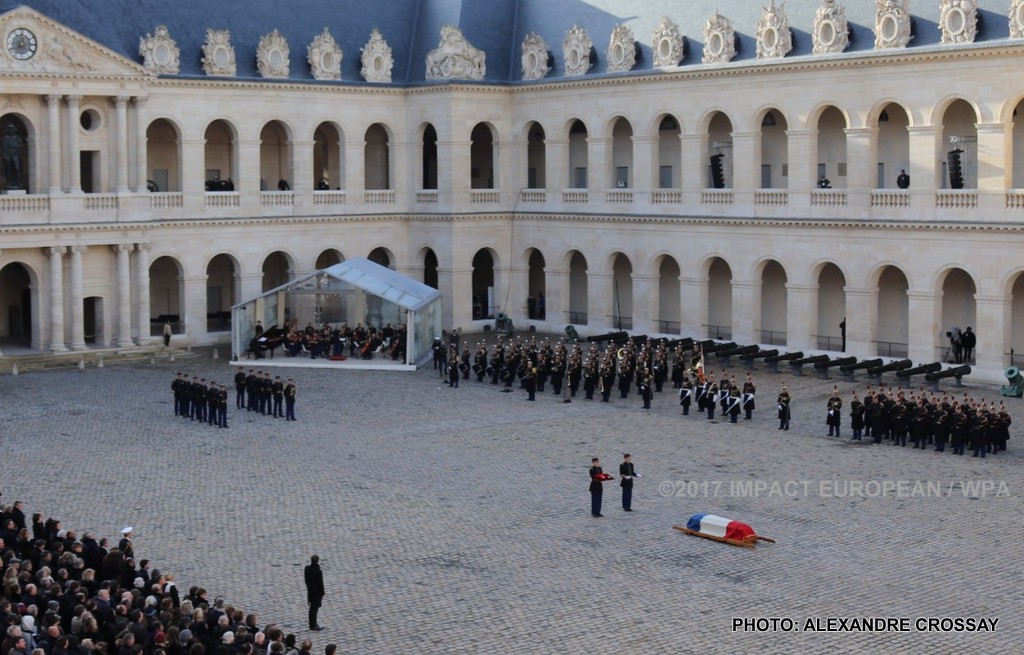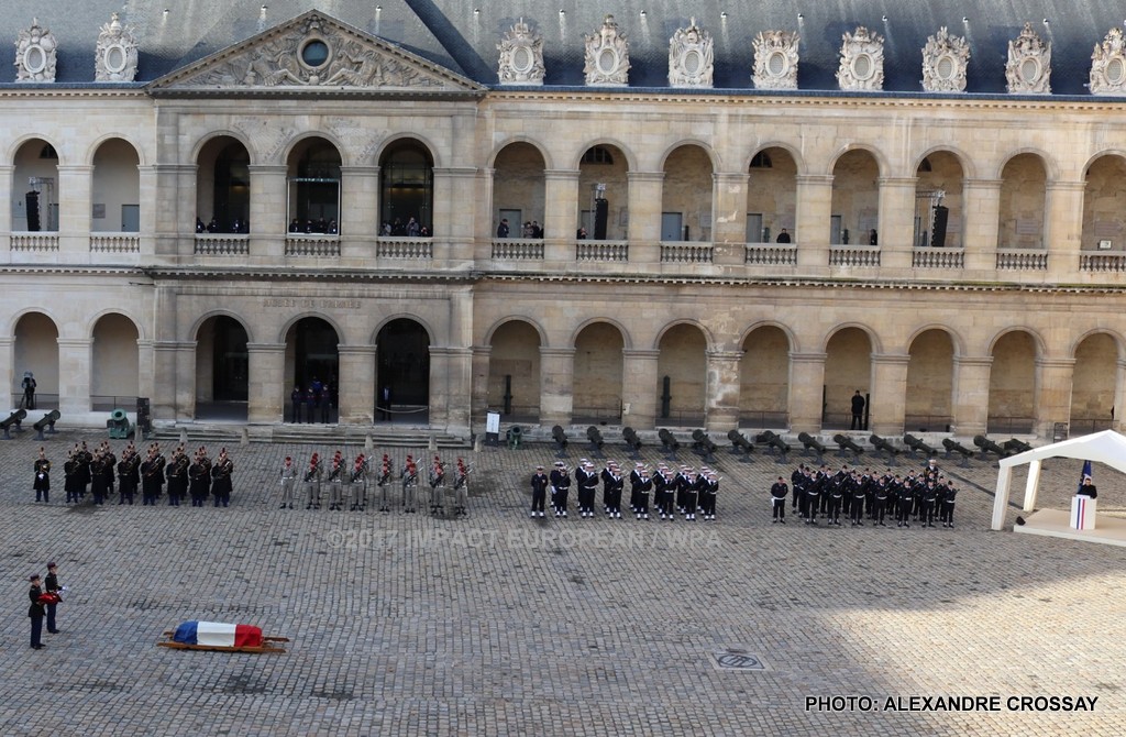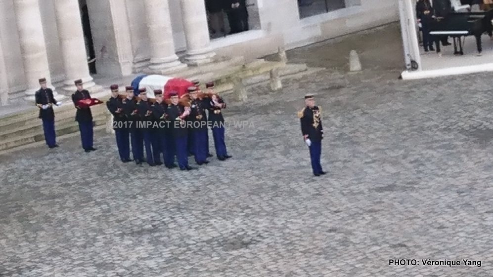 Face au cercueil de l’académicien recouvert du drapeau tricolore, le président français a évoqué «l’essence même de la France: l’amour de la littérature et l’amitié pour les écrivains» et «ce que la France a de plus beau et de plus durable: la littérature», le chef de l’État a déposé « un simple crayon à papier » sur le cercueil de l’académicien.