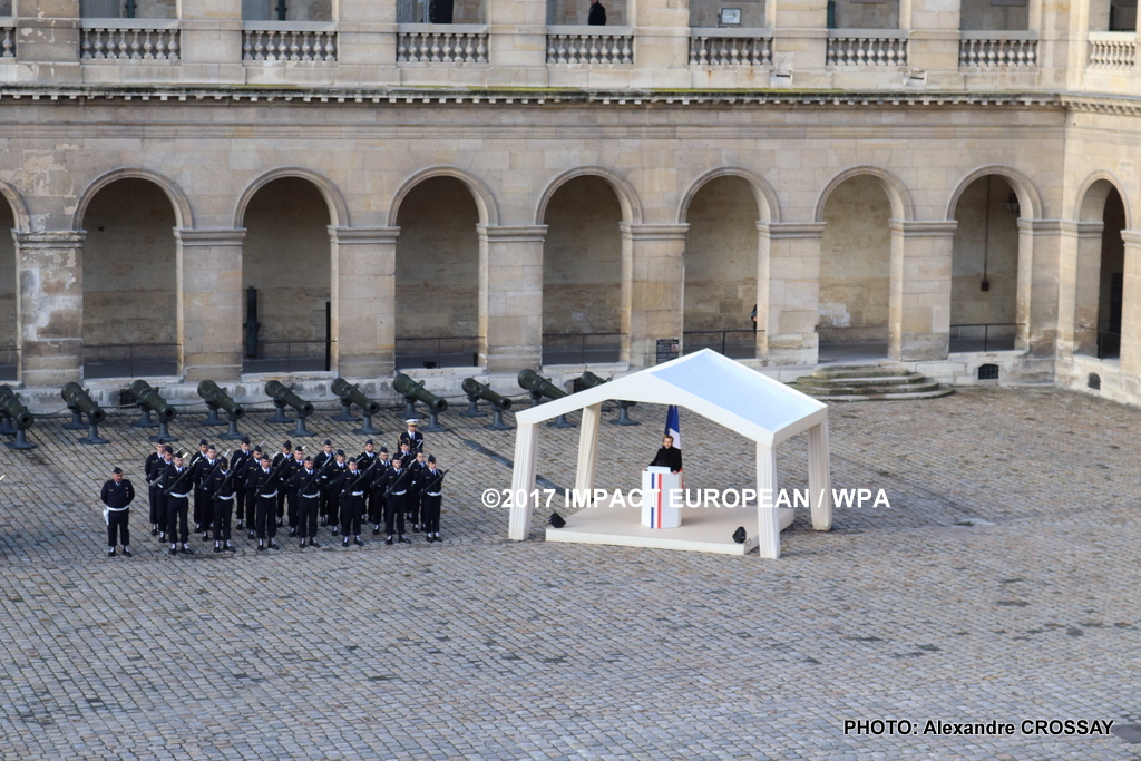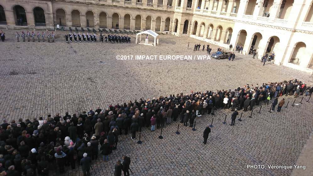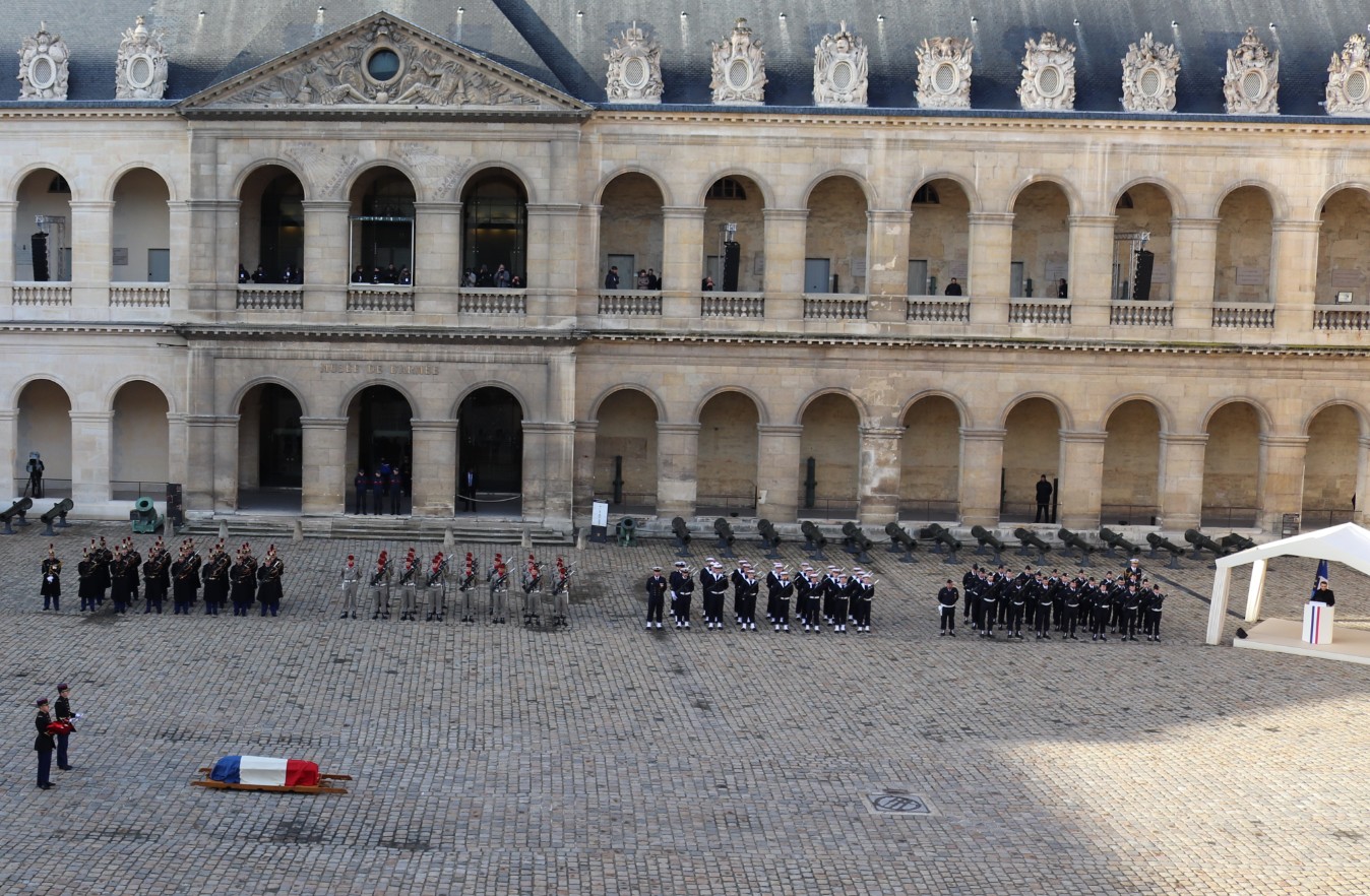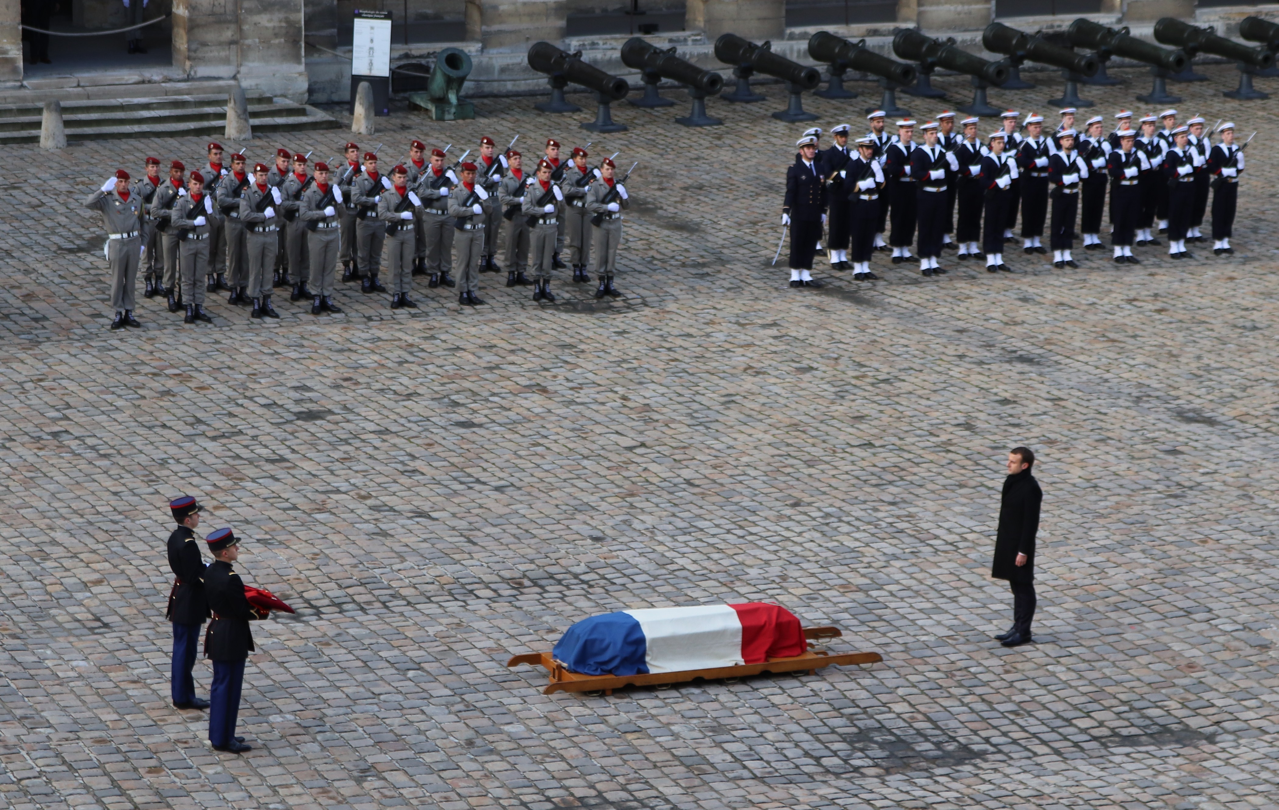 Le président français Emmanuel Macron a assisté vendredi à la cérémonie d’adieu à l’hôtel des Invalides.