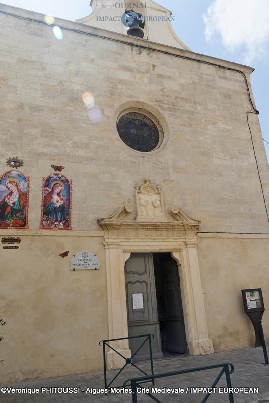 La Chapelle des Pénitents blancs d’Aigues-Mortes, se situe à l’angle de la rue de la République et de la rue Louis-Blanc, elle appartient à la confrérie des Pénitents blancs. La Chapelle des Pénitents blancs fut construite au XVIIe siècle. La confrérie des Pénitents Blancs fut fondée en 1625 par des dissidents de celle des Pénitents Gris. La chapelle fut certainement construite à cette époque (date 1668 sur le portail). Pendant la Révolution, la Chapelle servit de siège aux Sans Culottes et fut dépouillée de son mobilier. Elle fut rachetée en 1796, utilisée comme église paroissiale puis reprise par les Pénitents qui reconstruisent le choeur. En 1818, l’agrandissement néo-classique est confié à l’ingénieur Durand.