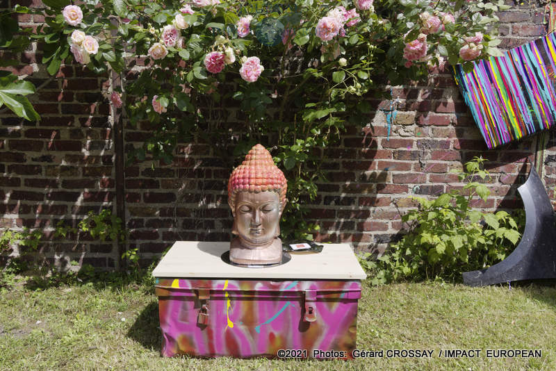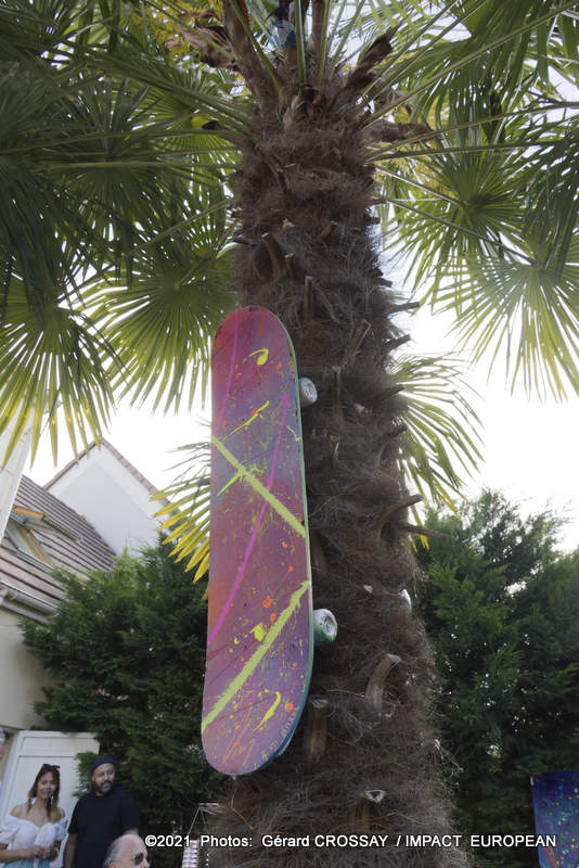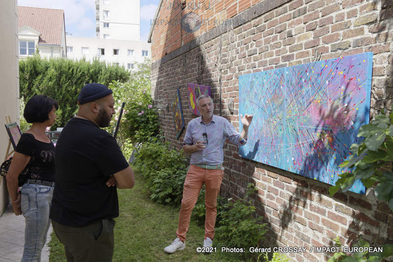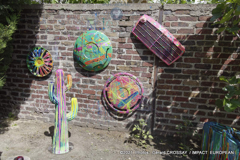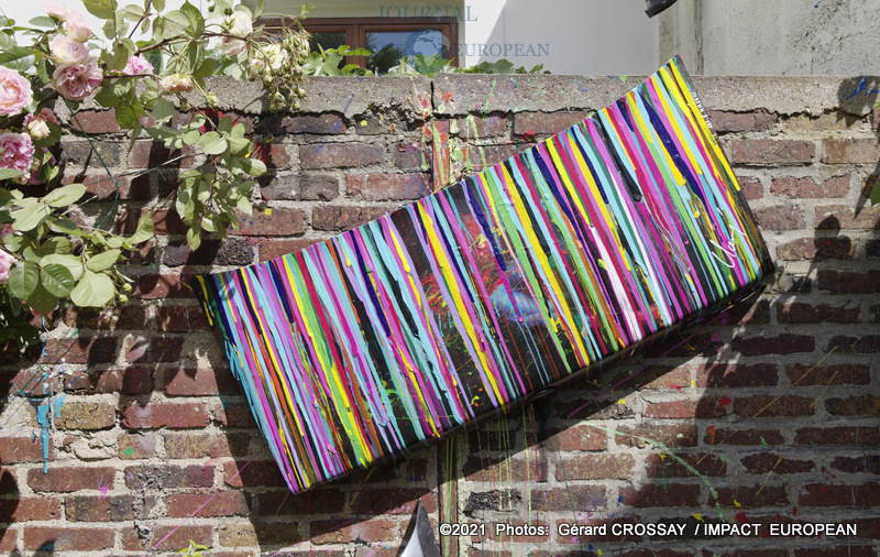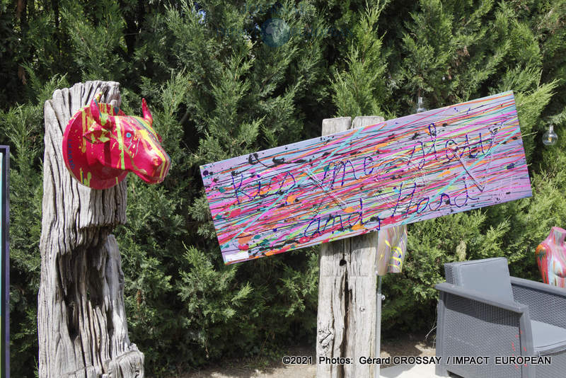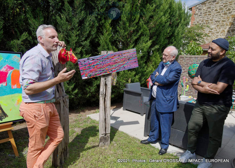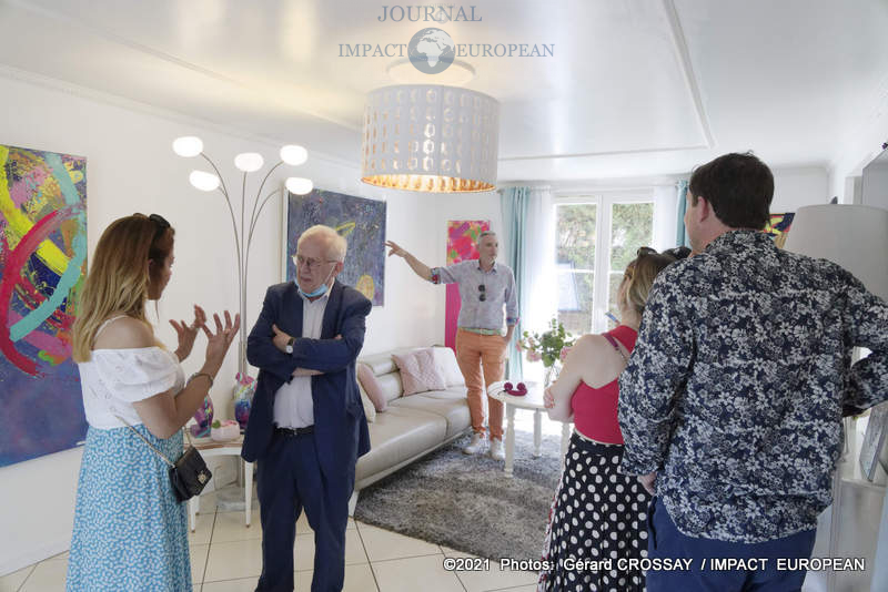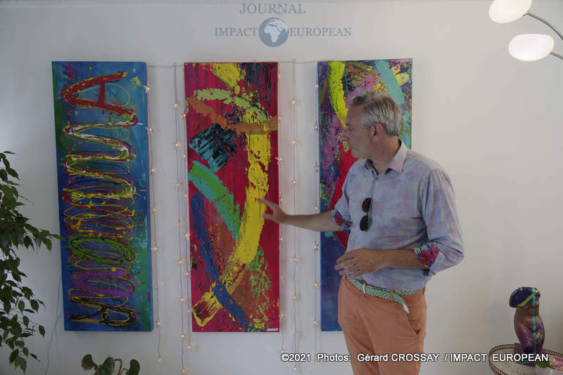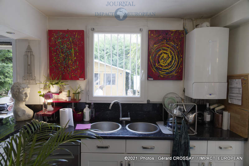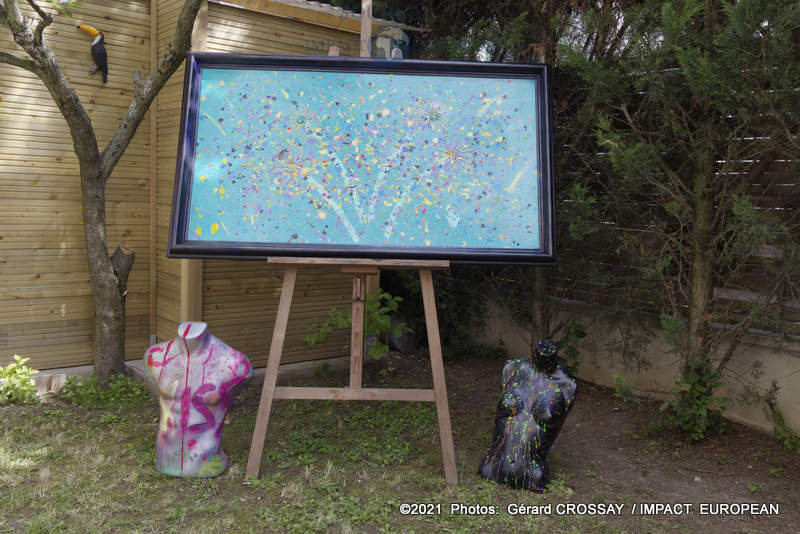 Estéban a choisi de nommer son atelier, « Le Jardin des Couleurs » puisqu’il avait déposé ses oeuvres de part et d’autre de son jardin, il a ensuite continué la visite dans le salon.