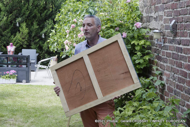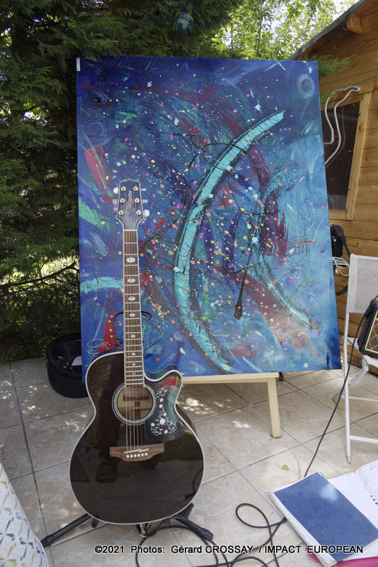 Début juin, Esteban a présenté de nouvelles oeuvres à ses invités. C’est dans son atelier, qu’ils ont pu déambuler autour d’un goûter au son des chansons interprétées par BB Ange.