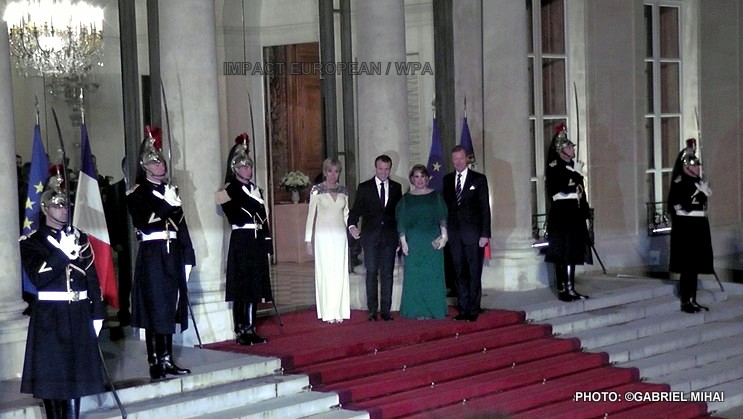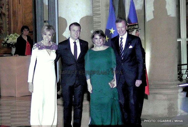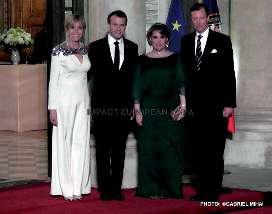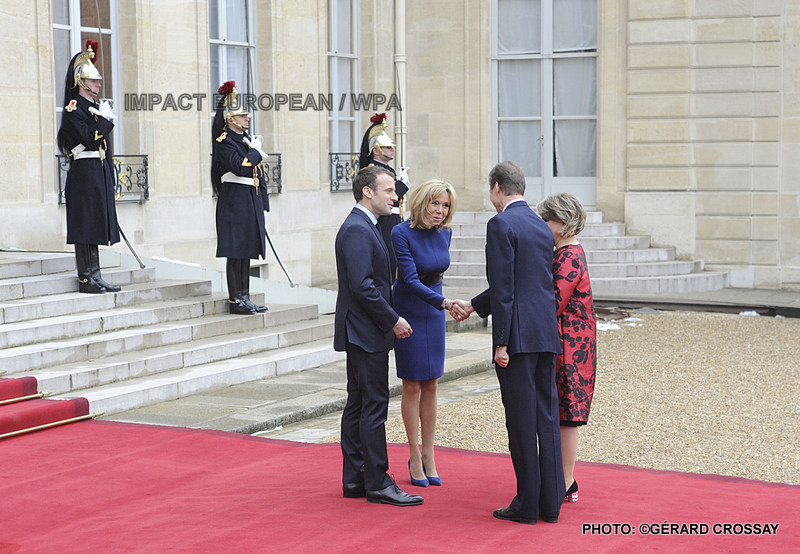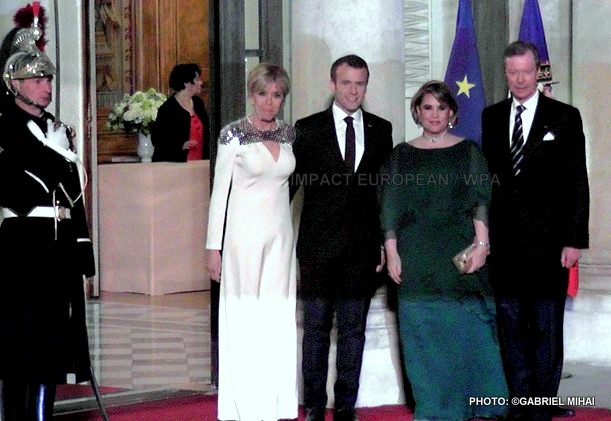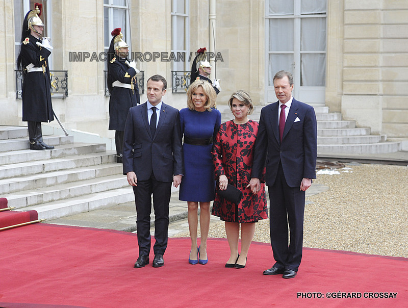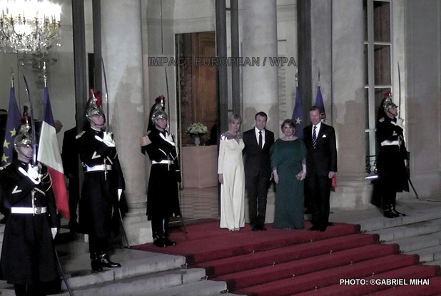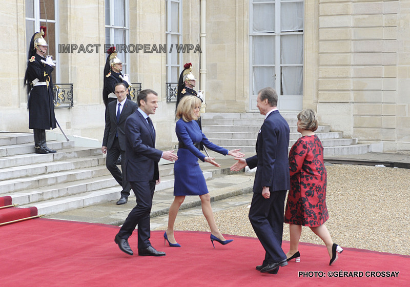 Dans la soirée, le couple grand ducal a été accueilli sur le perron du palais de l’Elysée par Brigitte et Emmanuel Macron pour un dîner d’Etat, le deuxième du quinquennat.