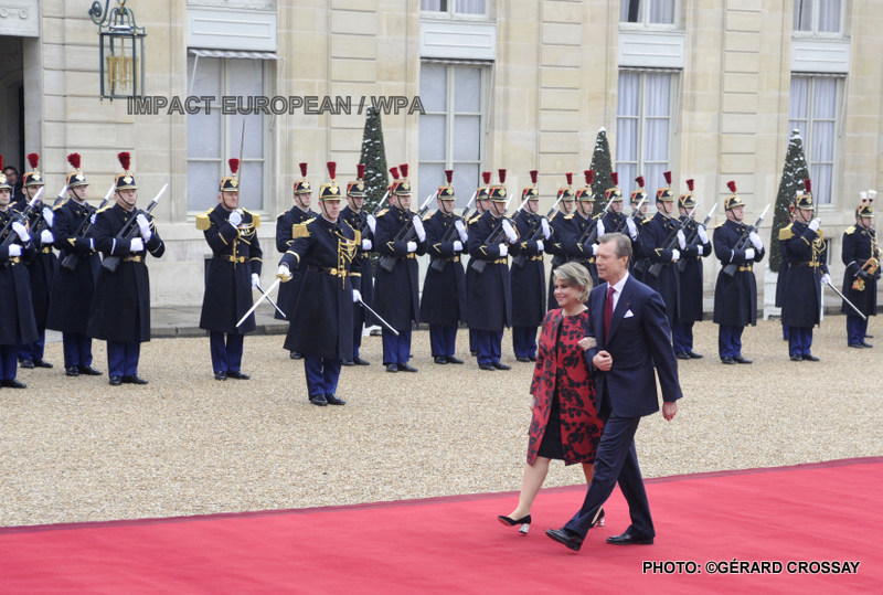 Le grand-duc Henri de Luxembourg et son épouse Maria Teresa ont été accueillis avec les honneurs à Paris pour une revue des troupes aux Invalides, avant d’être escortés à l’Elysée par les 140 chevaux et les 28 motards de la Garde Républicaine et reçus par Brigitte et Emmanuel Macron.