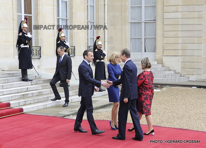 Le couple Macron a accueilli ce matin le grand-duc Henri de Luxembourg et son épouse Maria Teresa à l’Elysée; il s’agit de la première visite d’Etat en France d’un souverain luxembourgeois depuis 40 ans, trois jours centrés sur l’économie, le couple grand-ducal est accompagné d’une importante délégation gouvernementale, dont le Premier ministre Xavier Bettel qui sera reçu à l’Elysée mardi matin, et des hommes d’affaires.