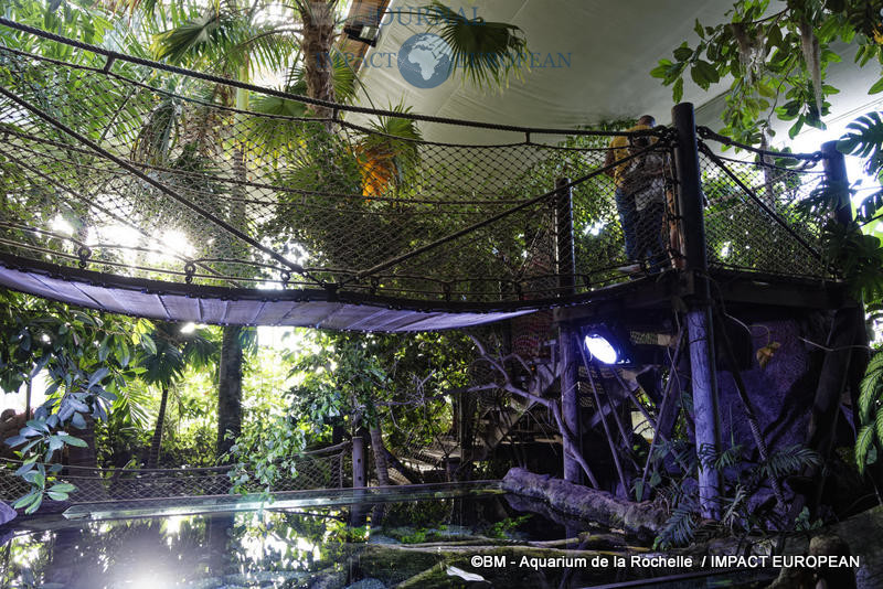 Composée de 3 aquariums et d’une rivière à tortues, la serre tropicale, ses palmiers et sa végétation terminent la visite.