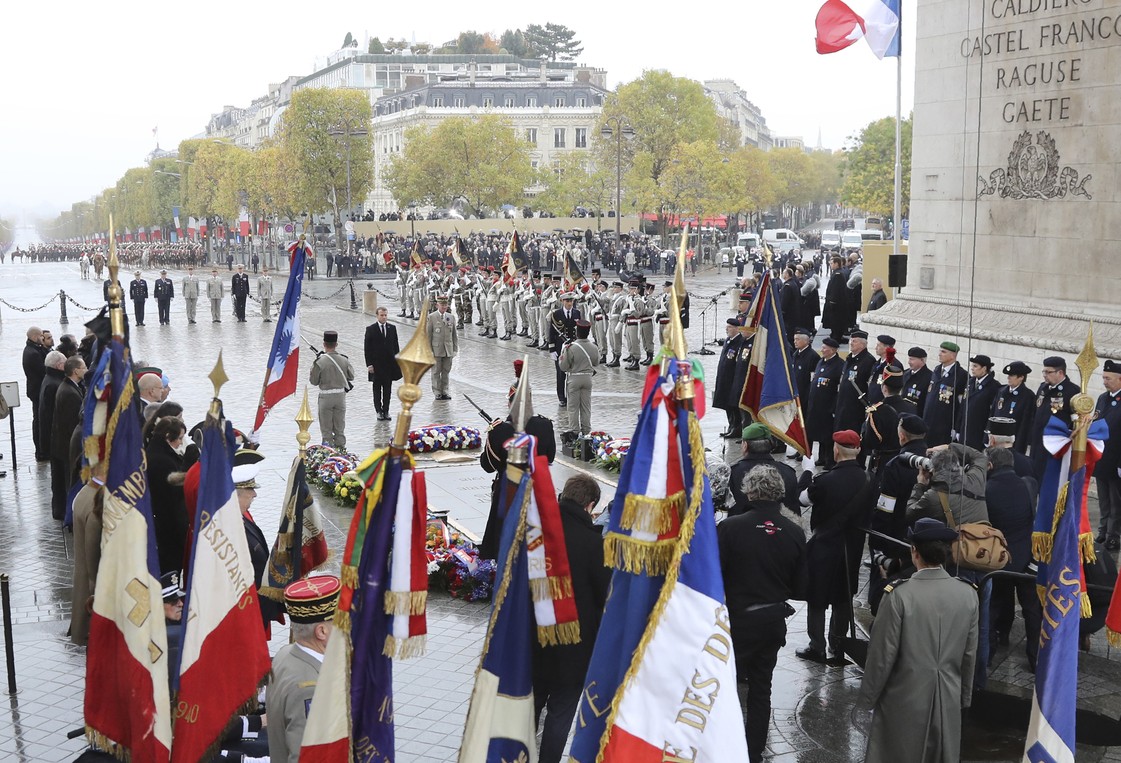 Le chef de l’Etat a ensuite déposé une gerbe au pied de la statue de Georges Clémenceau, en bas des Champs Elysées. Escorté par la Garde républicaine, Emmanuel Macron a remonté l’avenue sous une pluie fine avant de passer en revue les troupes et de déposer une gerbe devant la tombe du Soldat inconnu, place de l’Etoile.