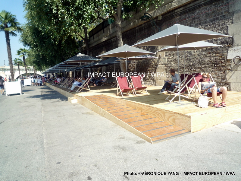 Après la fermeture de la voie Georges Pompidou il y a 2 ans, cette opération, qui existe depuis 2002 sur une proposition des groupes socialiste et écologiste en 2001 et soutenue par le maire de l’époque Bertrand Delanoe, accueille chaque année les habitants de la région et les touristes sur les quais désormais devenus piétonniers. A ce jour, Anne Hidalgo se bat pour lutter contre la pollution parisienne en transformant le bitume en plage. Jusqu’en 2016, des tonnes de sable mises gracieusement à la disposition de la capitale par le groupe Lafarge étaient déversées chaque année sur le site des quais de Seine, de la place de l’hôtel de Ville et depuis 2007 du Bassin de la Villette, donnant ainsi un goût de plages littorales pour s’adonner aux jeux de ballon, transats, parasols, etc… Des innovations apparaissent chaque année, ainsi en 2003, il a été décidé d’ajouter de brumisateurs, en 2004, un bassin flottant peu profond a été installé près du Pont Sully mais n’offrait pas la possibilité de pratiquer la natation, une bibliothèque au niveau du Pont Marie permettait le prêt d’ouvrages et la RATP améliora la visibilité en créant une station Paris Plage.