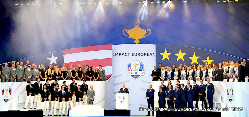 La cérémonie d’ouverture a eu lieu au Golf National jeudi 27 sous la direction de David Ginola qui a changé pour l’occasion sa tenue d’ancien footballeur contre celle de maître de cérémonie. Après un concert des Kaiser Chiefs, le passage de la Patrouille de France et la Marseillaise, les 2 capitaines, Thomas Bjorn pour l’Europe, et Jim Furyk pour les États-Unis, sont arrivés sur scène. C’est alors que l’Hymne Américain a retenti suivi de l’Ode à la Joie; la composition des équipes est alors énoncée et une ovation se fait à l’annonce du nom du grand champion Tigger Woods. Chez les Européens, ce son McIlroy et Poulter qui sont le plus applaudis. Enfin, la Présidente du conseil régional d’Île de France, Valérie Pécresse prend la parole.