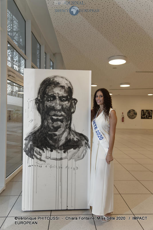 Chiara Fontaine, élue Miss Sète 2020 le 11 juillet dernier au casino de la Corniche, est venue découvrir l’exposition de CharlElie Couture. Chiara Fontaine, Miss Sète 2020 a beaucoup apprécié l’œuvre « Hommage à George Floyd ».