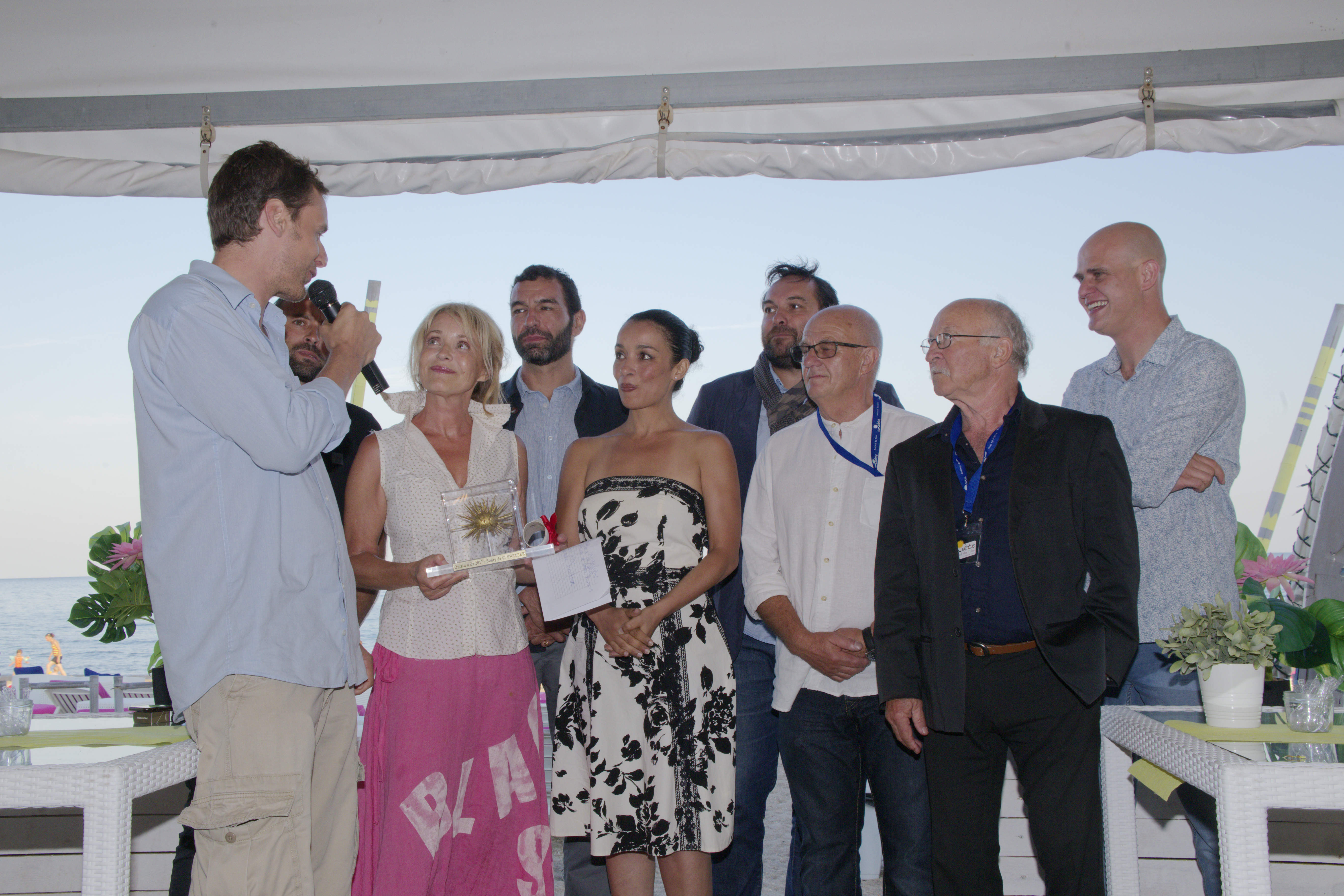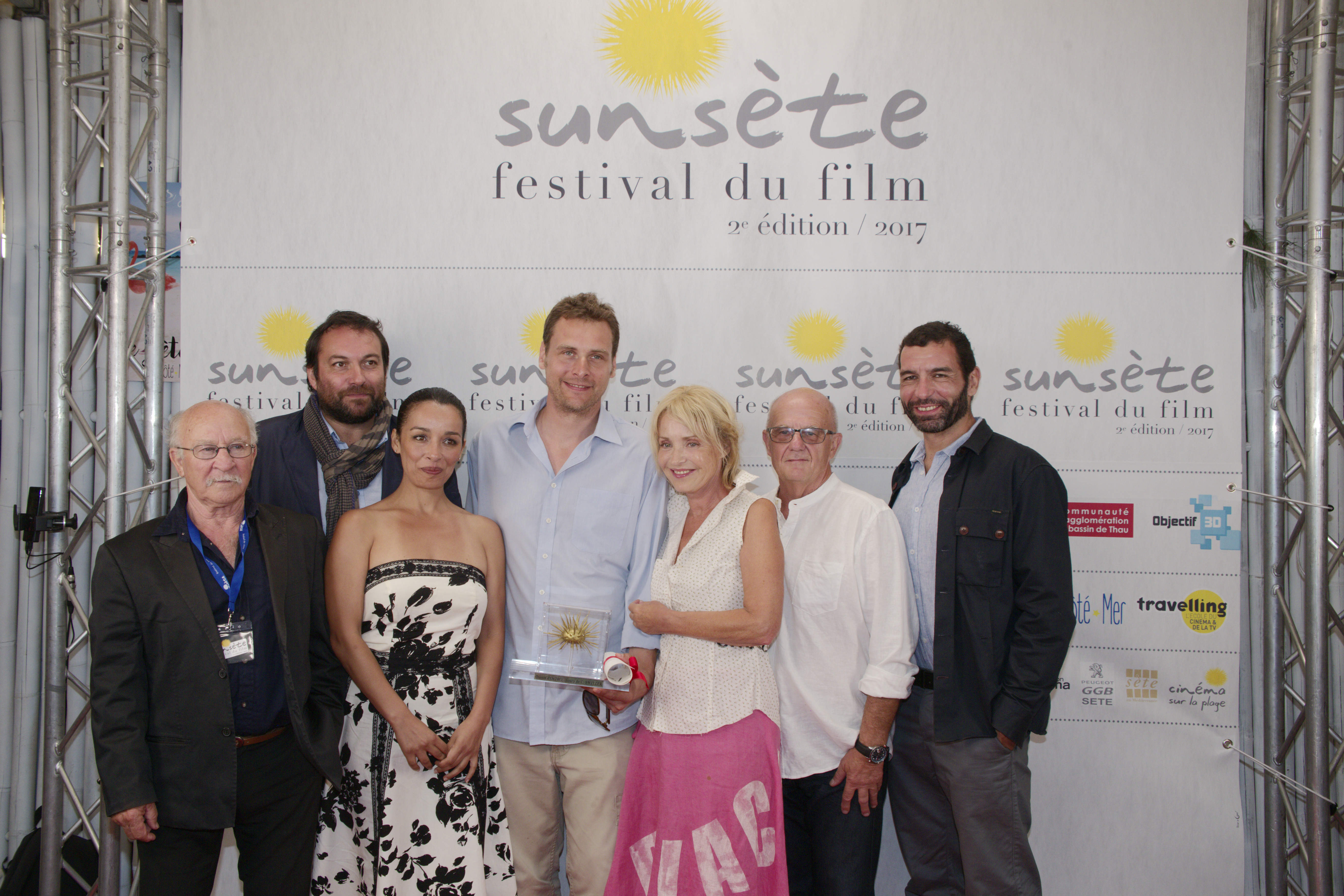 Entourée de Bernard Tourre, Stéphane Caput, Claude-Timon Gaignaire, Nozha Khouadra et Olivier Lousteau, Fanny Cottençon a remis le trophée, l’Oursin d’or à Christophe Switzer, réalisateur, pour son court-métrage « Soury » en compétition avec 16 autres courts-métrages sélectionnés parmi les 1300 films internationaux reçus par le Sunsète Festival du Film de Sète.