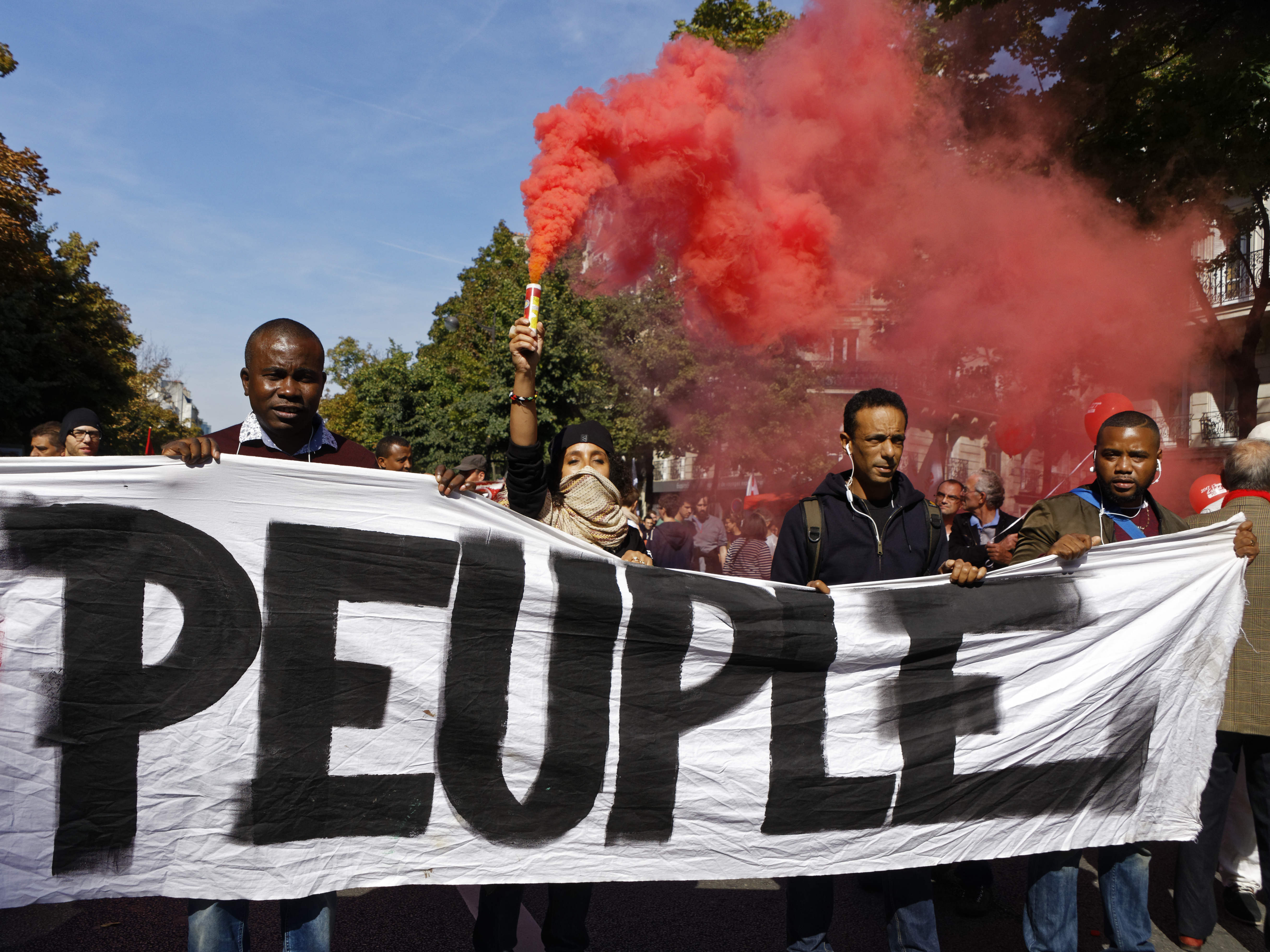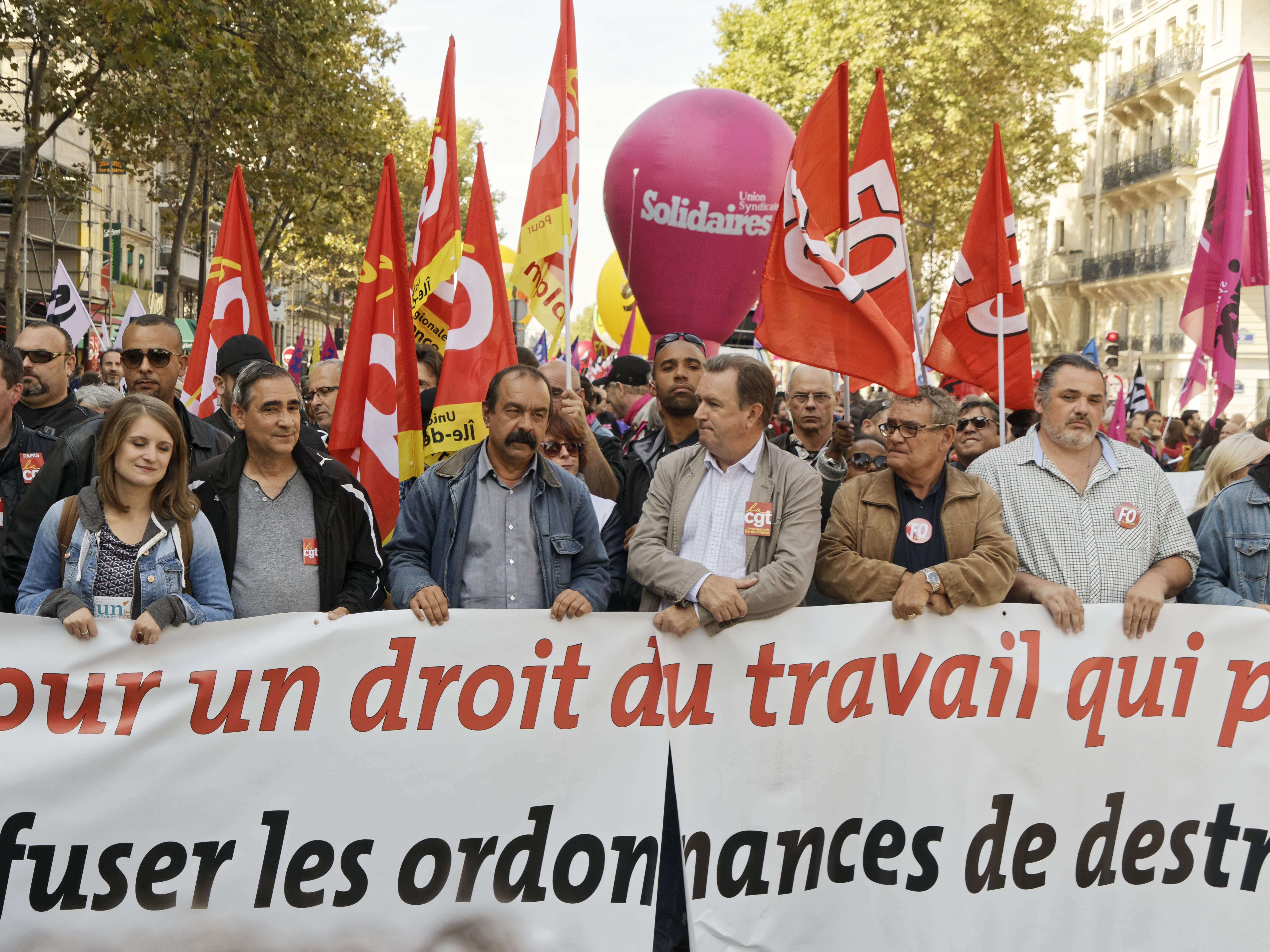 «Macron, marionnette des patrons», «retrait de la loi travail»… : plusieurs milliers de personnes avaient commencé à défiler à la mi-journée, à Paris et dans plusieurs villes en régions, sous une nuée de drapeaux syndicaux et de ballons multicolores.