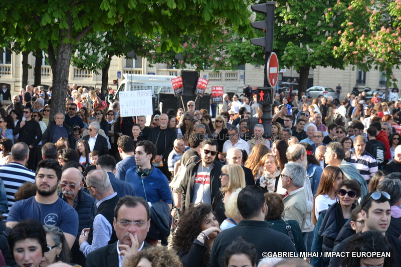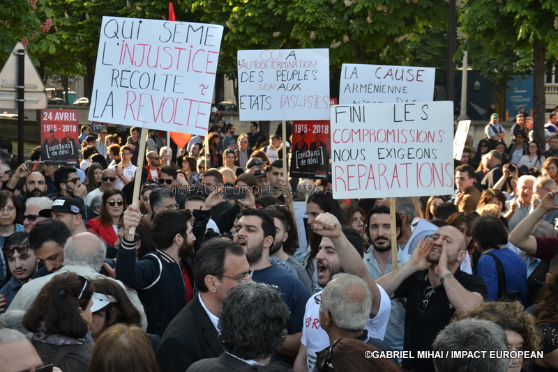 Après les discours, une marche de revendication s’est dirigée dans le calme jusqu’aux Champs Elysées, à deux pas de l’ambassade de Turquie. Un discours des représentants du Nor Seround et de Nazarpek a été prononcé à la fin.