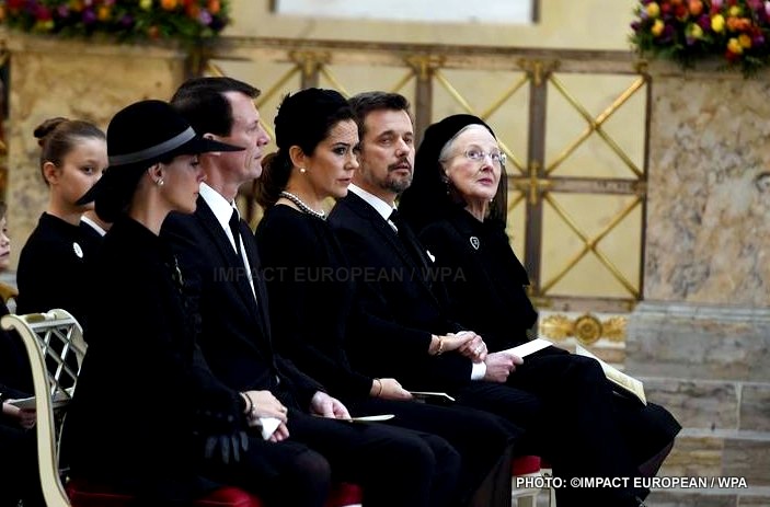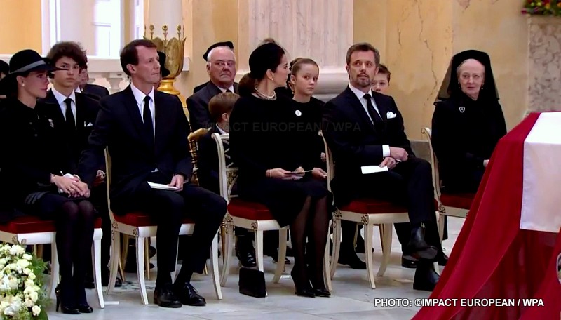 A 11 heures, la reine Margrethe, ses deux fils, le prince héritier Frederik, 49 ans, et Joachim, 48 ans et les familles ont foulé le parvis de chapelle, où étaient réunis le personnel de la Cour, des représentants officiels et les proches du prince, venus du Danemark et de France.