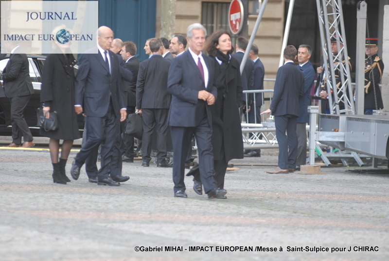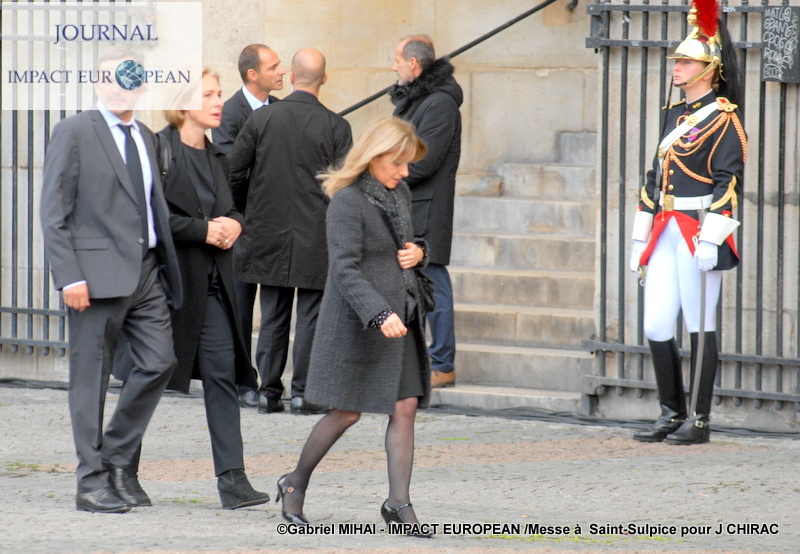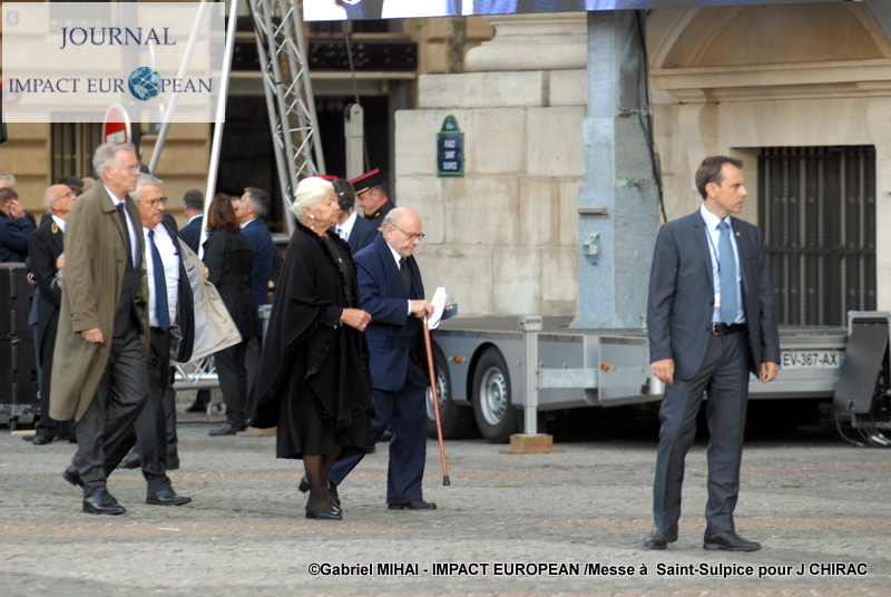 Aux Invalides encore, mais dans la cour cette fois, se sont tenus les honneurs funèbres militaires. Avant que le convoi funéraire ne rejoigne l’église Saint-Sulpice. Bernadette Chirac, présente à l’hommage privé, ne l’était pas pour le service solennel.