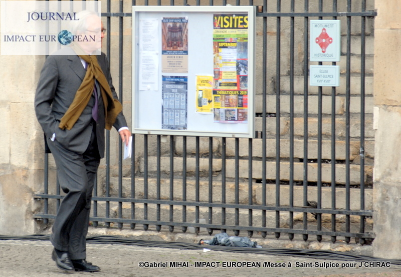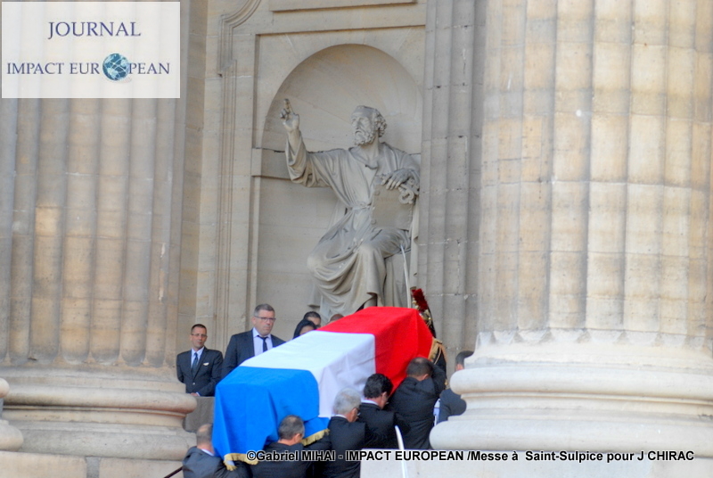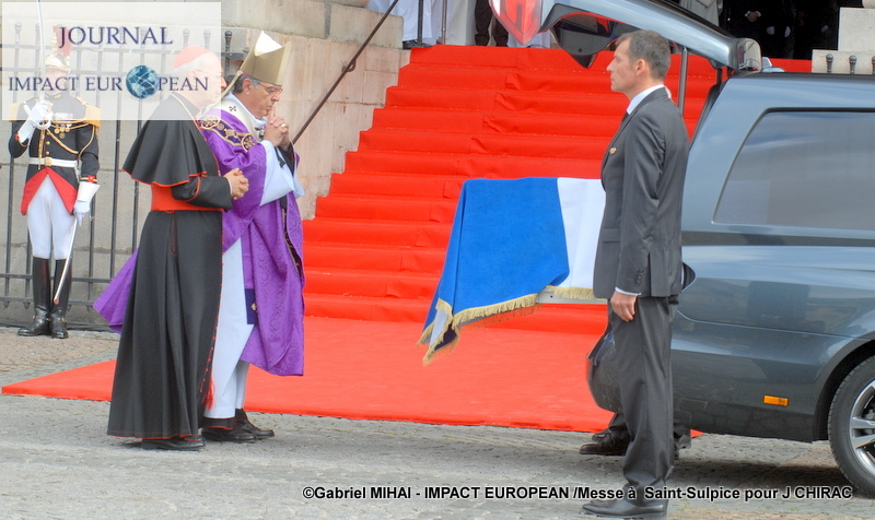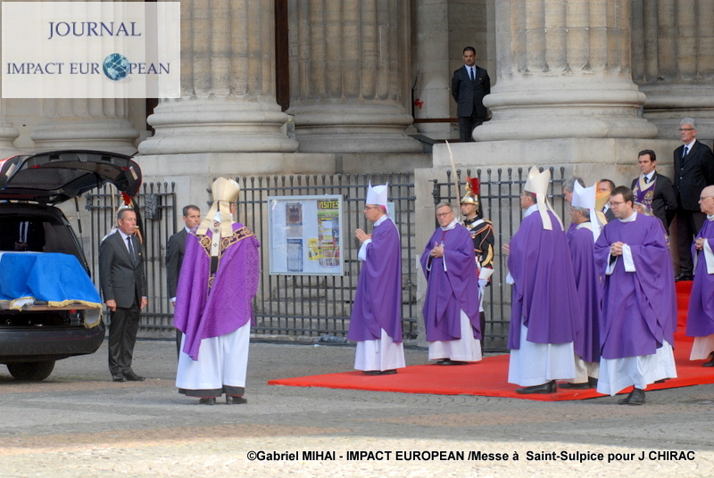 Michel Aupetit, archevêque de Paris, est sorti de l’église Saint-Sulpice pour s’incliner devant le cercueil, et a salue en Jacques Chirac, «un homme chaleureux», lors de l’homélie en l’honneur de l’ex-président en l’église Saint-Sulpice. «Le président Jacques Chirac […] avait axé sa campagne de 1995 sur le thème de la fracture sociale, portant ainsi son regard sur ceux qui restent sur le bord de la route», a-t-il déclaré.