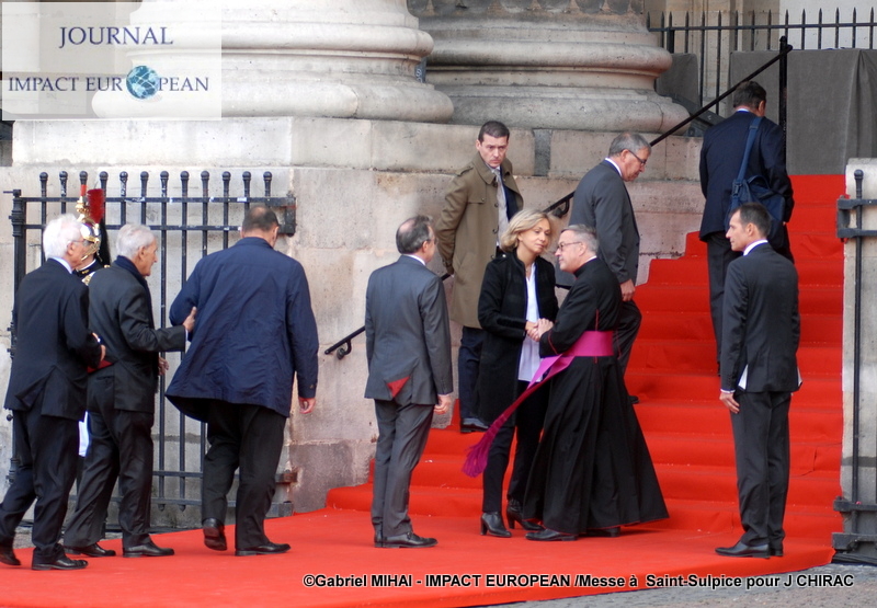 Une absence remarquée : celle de Bernadette Chirac. Présente le matin, lors d’une cérémonie privée aux Invalides, la femme de Jacques Chirac a renoncé à cette venue. On l’a dit affaiblie, c’est en tout cas » en raison de santé » que Bernadette Chirac sera absente du service solennel, a annonce, Mgr Aupetit, archevêque de Paris.
