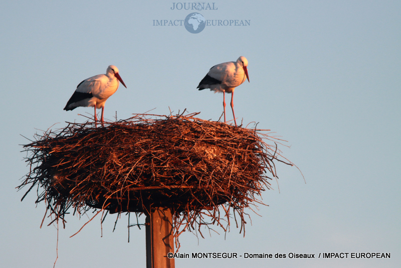 Les cigognes blanches migrent 2 fois par an. Pour la migration prénuptale, les oiseaux partent des zones d’hivernage vers celles de nidification. La postnuptiale correspond au trajet inverse (du site de reproduction vers les quartiers d’hiver en passant par le détroit de Gibraltar).. Cette année, on a compté 50 jeunes et 30 adultes partis vers les pays chauds. Certaines viennent des Pays-Bas. Par ailleurs, il existe 25 cigognes blanches sédentaires sur le domaine tout au long de l’année.