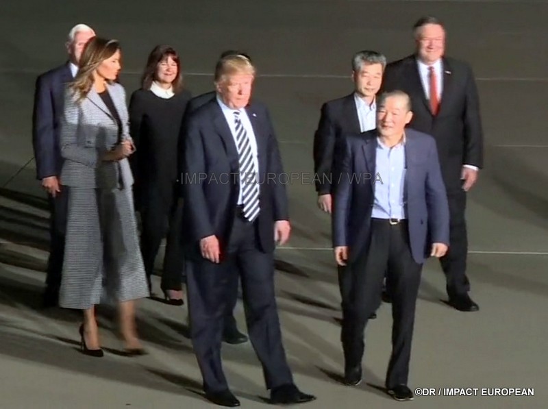 L’avion transportant Mike Pompeo et les trois hommes s’est posé vers à 2h40 (8h40 en France) sur la base militaire d’Andrews près de Washington. Ils ont été accueillis par Donald Trump, sa femme Melania, le vice-président Mike Pence et le conseiller de la Maison-Blanche à la sécurité John Bolton.