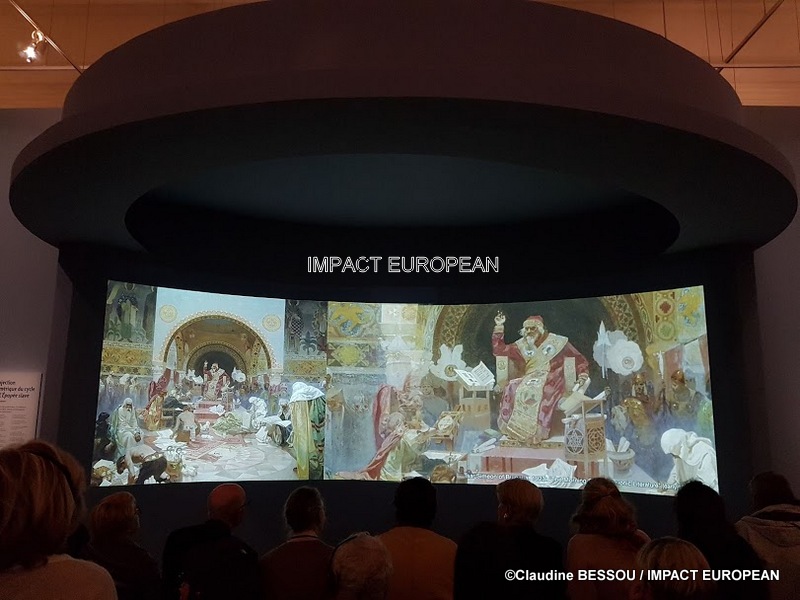 En 1910 Mucha retrouve sa terre natale pour mettre son art au service de ses compatriotes. Il s’installe en Bohême occidentale et se concentre sur le projet de l’Epopée Slave, qui encourage et guide la population dans la culture de sa propre histoire.
