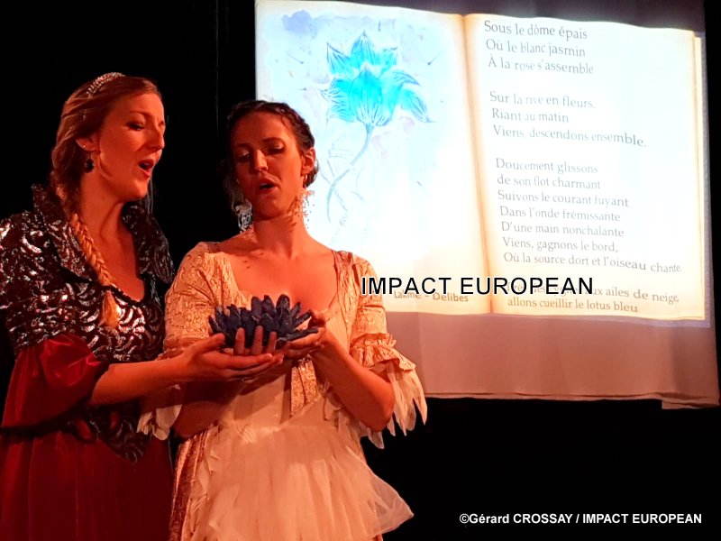 Trois soeurs, princesses dun lointain royaume, un prince charmant, un philtre d’amour, la Lune, le Marchand de Sable, la Bonne Fée … un beau conte lyrique qui nous enchante avec les airs célèbres de Ravel, Mozart, Dvorak, Bellini, Debussy … Rossini, le Duo des chats! … miaou! … qui se termine avec « Belle nuit, ô nuit d’amour » d’Offenbach, repris en choeur par toute la salle ravie de ce spectacle endiablé qui mêle avec bonheur humour et tragédie.