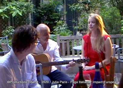 If the clip of the French version was designed as a mini cartoon by Marie Kawczynski and Antoine Chassin, following the cancellation of filming in the south of France (pandemic obliges!), That of the Italian version was shot in early July at the Hôtel de l’Abbaye in Paris. we find Julia Paris there singing accompanied on the guitar during a summer evening with friends.