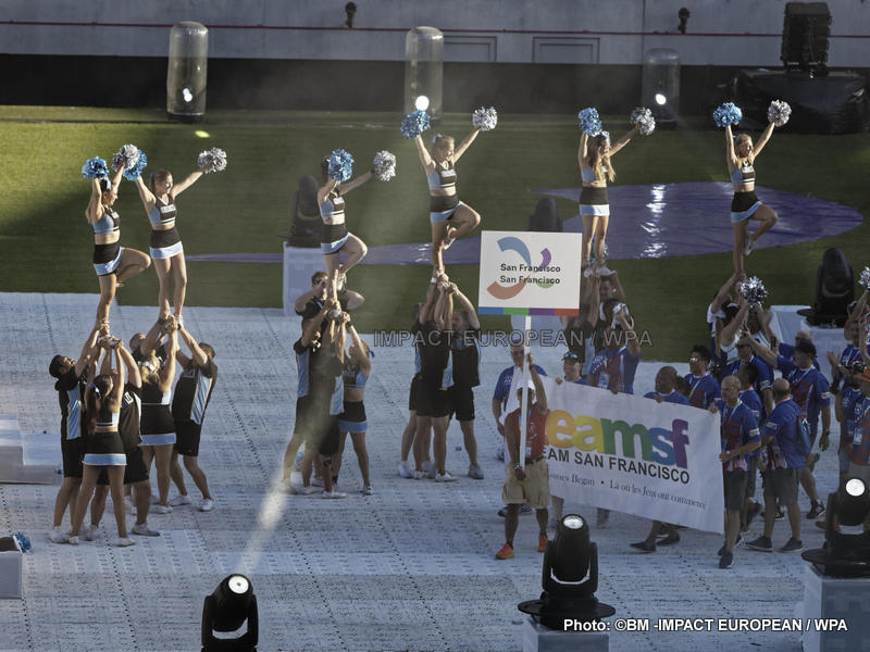 San Francisco ouvre le défilé comme c’est la tradition, suivi de New York et des 50 autres états, qui constituent la Fédération des USA, traversent le stade.