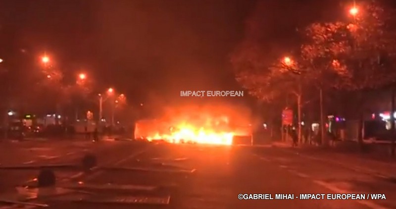 Barricades incendiées, fumée noire, feux tricolores arrachés, pavés descellés, canons à eau… Envahi de gaz lacrymogène, le quartier des Champs-Élysées a en effet été le théâtre d’incidents violents tout au long de la journée.