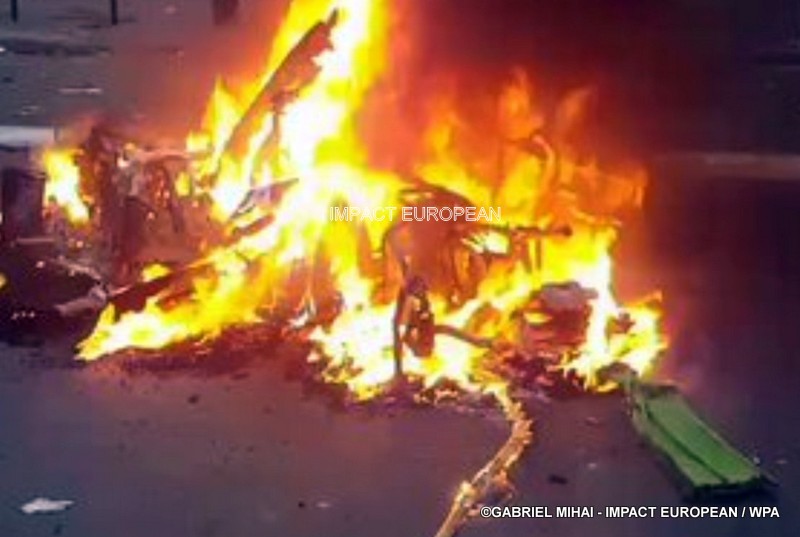 Après 20 heures, la tension restait vive sur l’avenue et dans certaines rues alentours, avec encore des petits groupes mobiles de personnes, certaines cagoulées, qui continuaient de « harceler » les forces de l’ordre ou d’incendier des barricades.