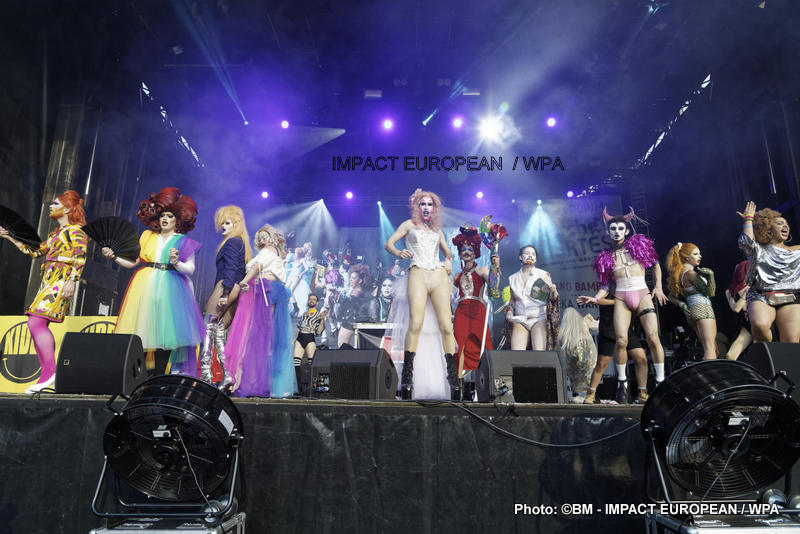 A l’arrivée de la Marche, un Grand Podium attendait les participants de 17h à 22h, au menu duquel on retrouvait Rag, Gang Bambi, Kiddy Smile ou encore Arnaud Rebotini et Rebeka Warrior, Sexy Sushi, Matteo EL Khodr et le Rainbow Symphony Orchestra (RSO), suivant l’exigence et la représentativité à suivre dans ce spectacle électro.