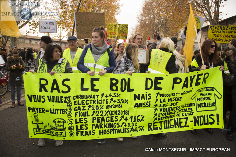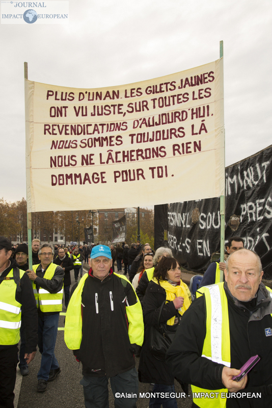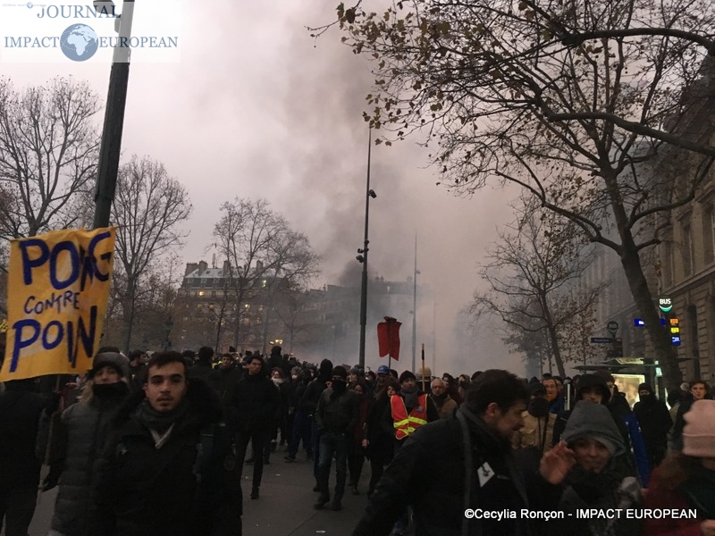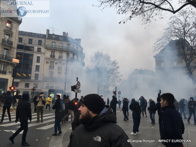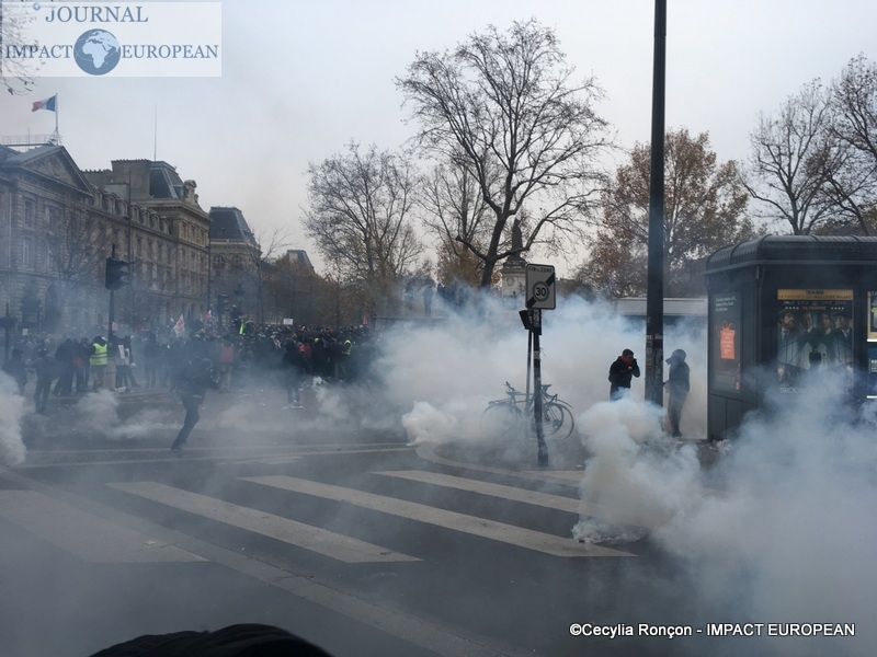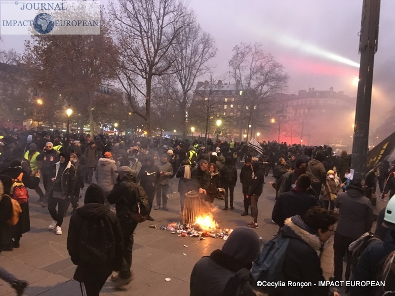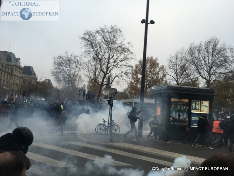À Lyon, de brefs affrontements entre les forces de l’ordre et des groupes de jeunes cagoulés et de « gilets jaunes » ont d’ailleurs éclaté. Selon la préfecture de région, « des groupes d’individus violents » s’en sont pris à la police et la gendarmerie, jetant des projectiles avant de se prendre des gaz lacrymogènes en représailles. À Nantes, où 20.000 personne sont été dénombrées par les forces de l’ordre, les manifestants ont roué de coups une piñata géante, présentée comme une effigie d’Emmanuel Macron. Sur des images circulant sur les réseaux sociaux, on peut également apercevoir des individus habillés de noir caillasser une boutique SFR du centre-ville.