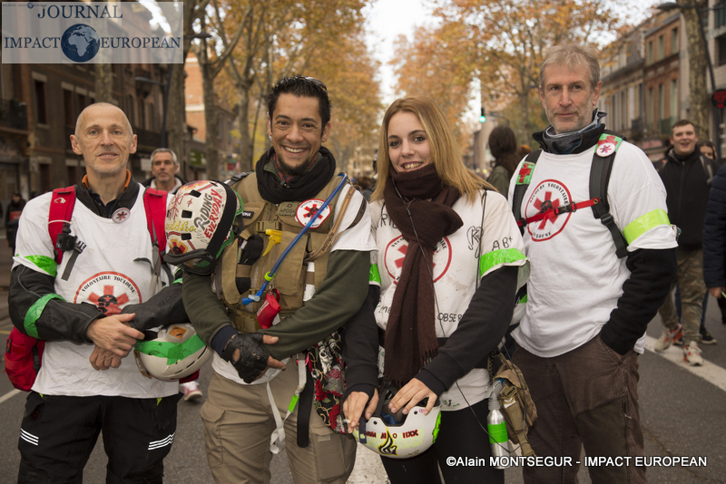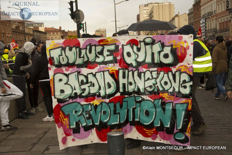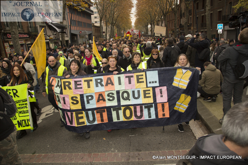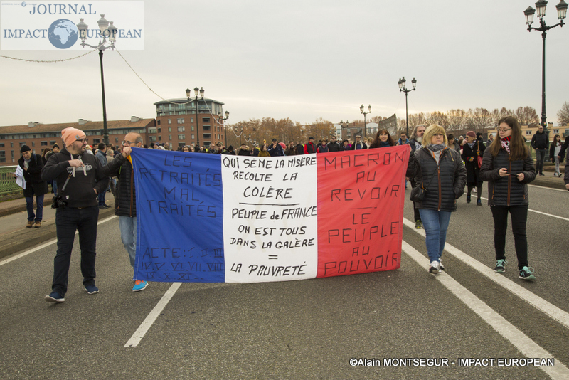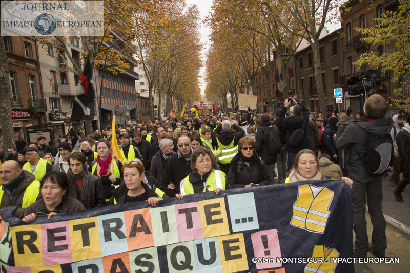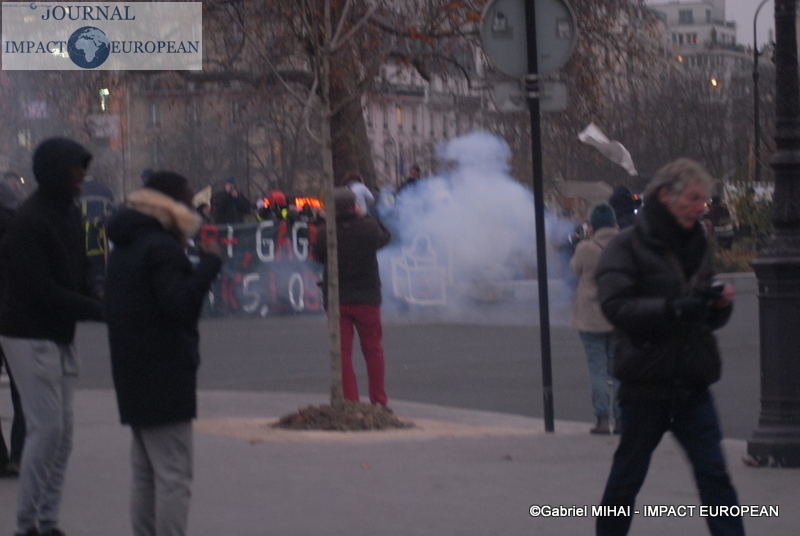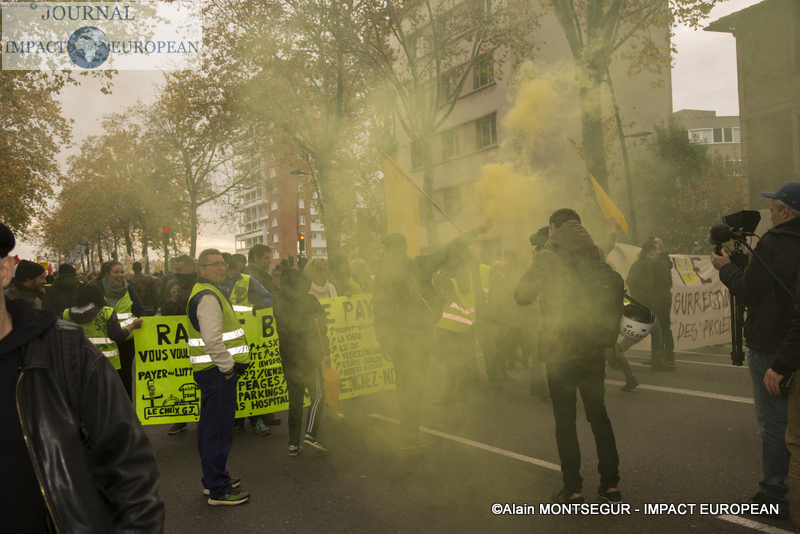 À Lyon, de brefs affrontements entre les forces de l’ordre et des groupes de jeunes cagoulés et de « gilets jaunes » ont d’ailleurs éclaté. Selon la préfecture de région, « des groupes d’individus violents » s’en sont pris à la police et la gendarmerie, jetant des projectiles avant de se prendre des gaz lacrymogènes en représailles. À Nantes, où 20.000 personne sont été dénombrées par les forces de l’ordre, les manifestants ont roué de coups une piñata géante, présentée comme une effigie d’Emmanuel Macron. Sur des images circulant sur les réseaux sociaux, on peut également apercevoir des individus habillés de noir caillasser une boutique SFR du centre-ville.