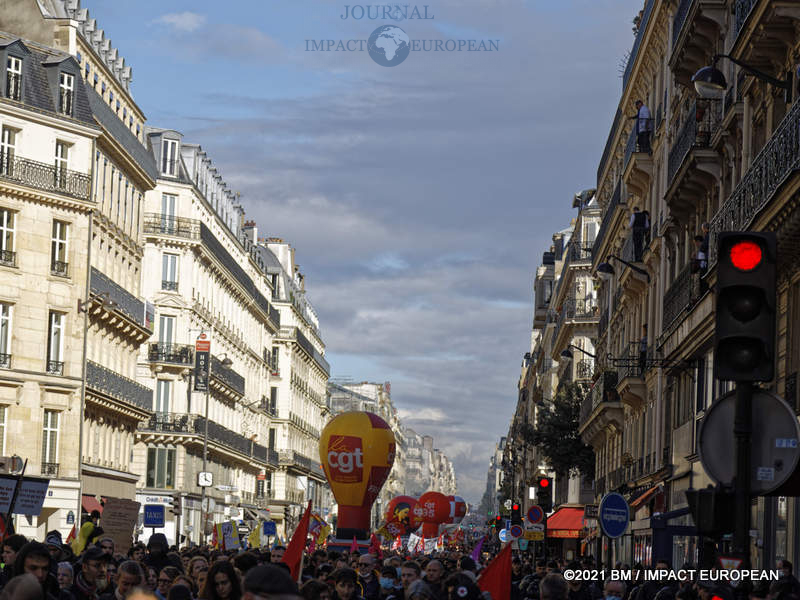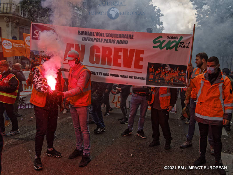 Finalement, le cortège est parti à 14h de la République (75010) pour se rendre Chaussée d’Antin (75009) passant par le Bd Magenta et la rue Lafayette. Liée à la crise qui a entraîné la suppression de 12 000 emplois, cette grève générale du 5 octobre a produit des perturbations dans les transports en commun et des décrochages dans l’administration. La manifestation très entourée par les forces de l’ordre, s’est déroulée dans le calme.