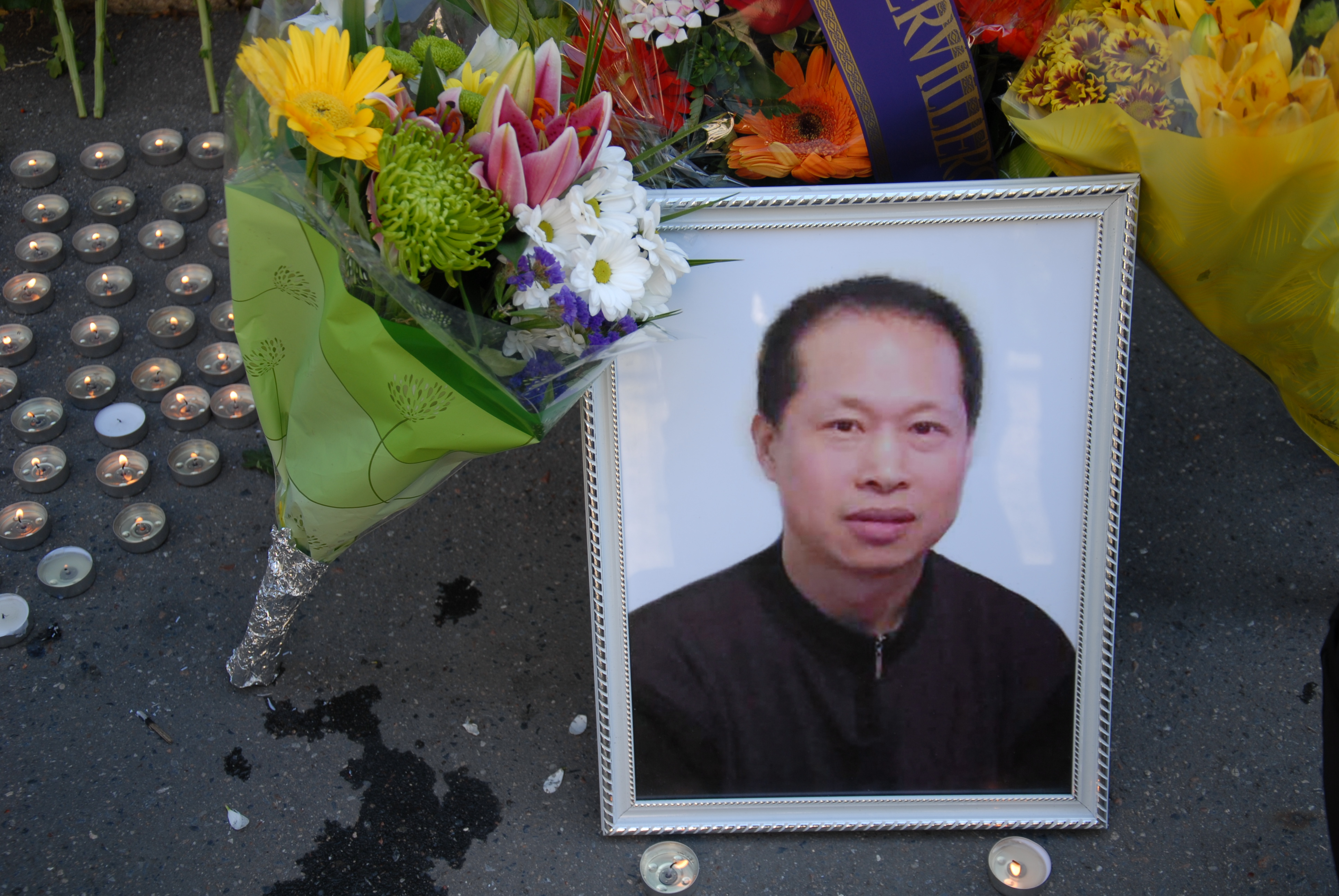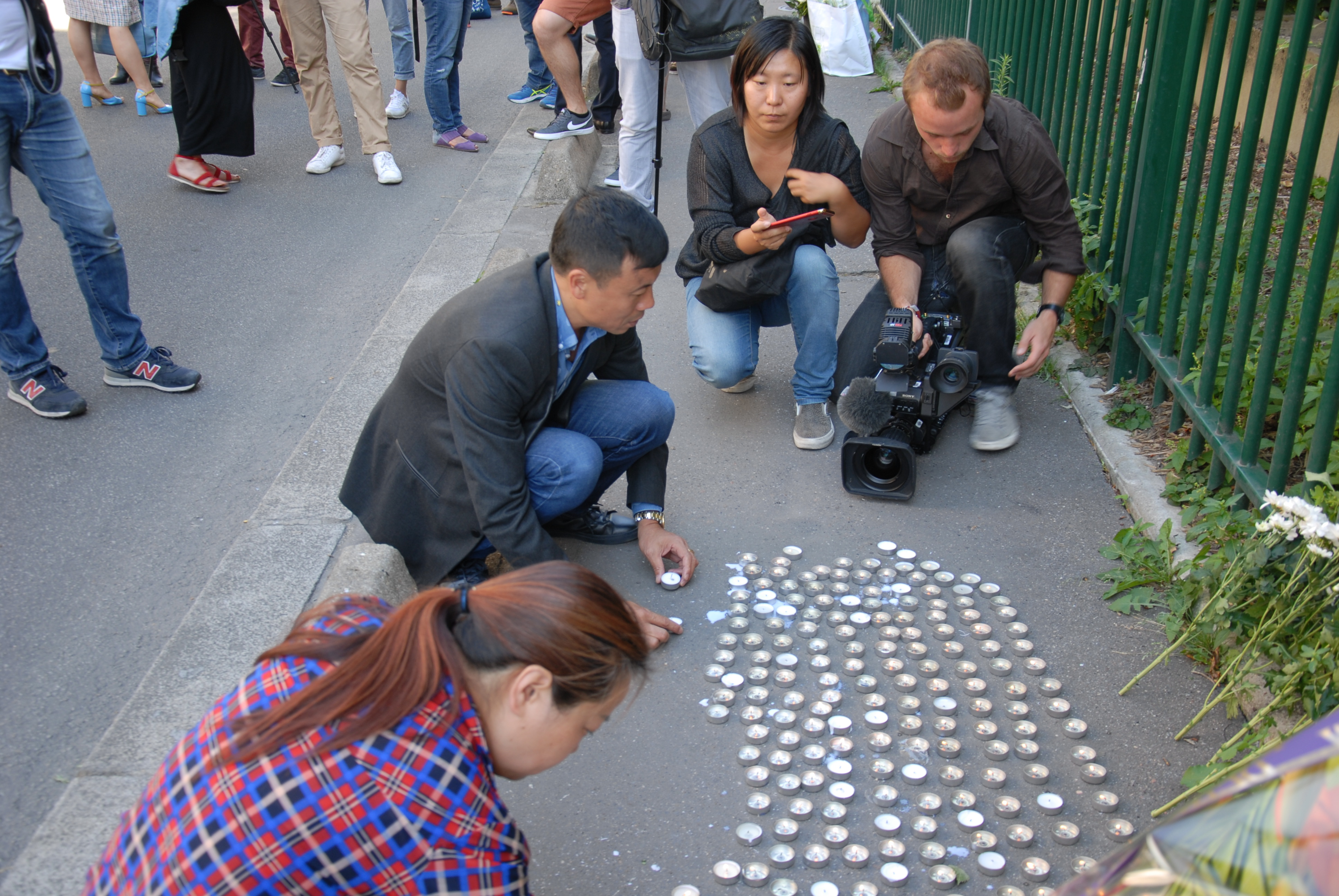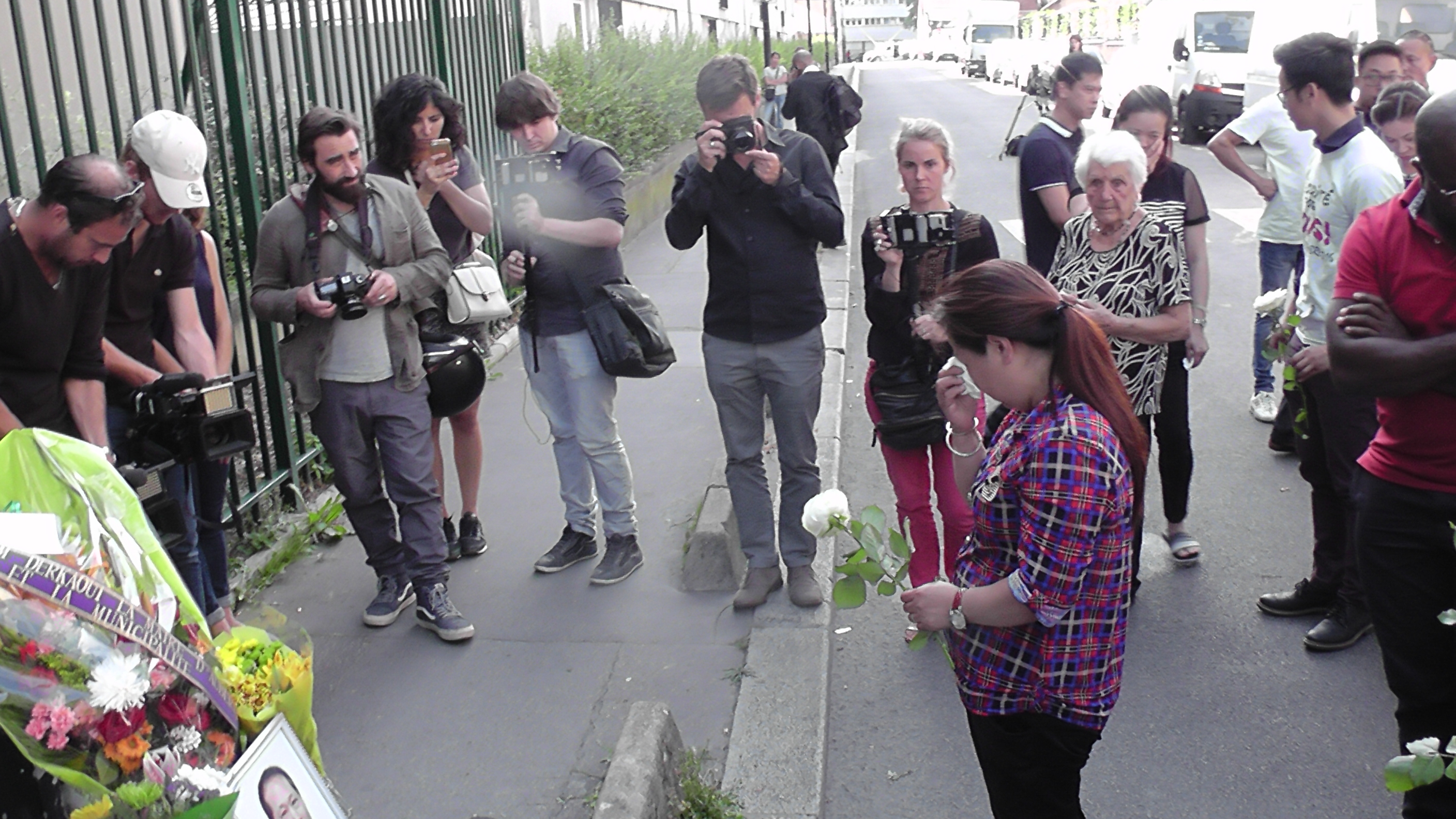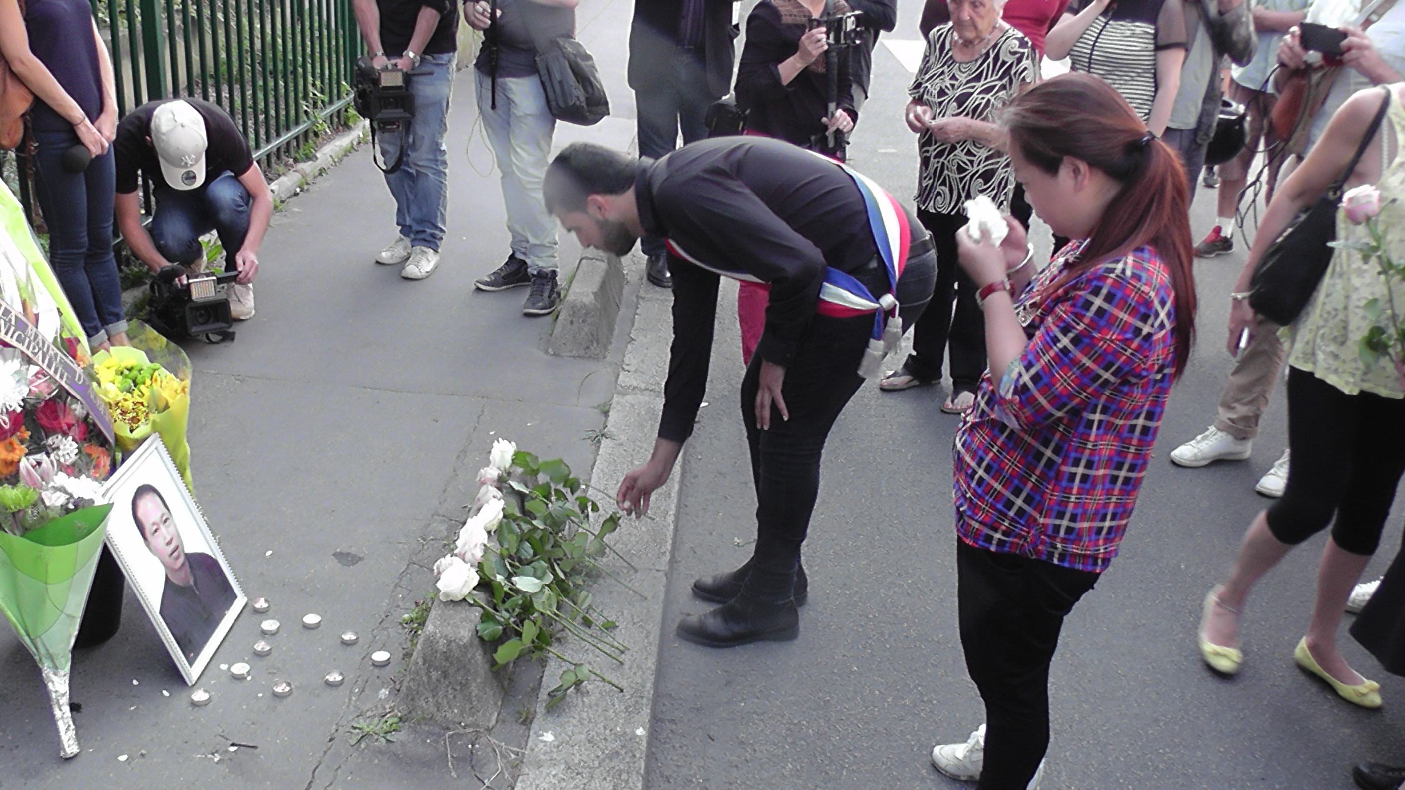 Un an après la mort de Zhang Chaolin, couturier chinois d’Aubervilliers, un hommage a été rendu sur le lieu de son agression, rue des écoles à Aubervilliers.