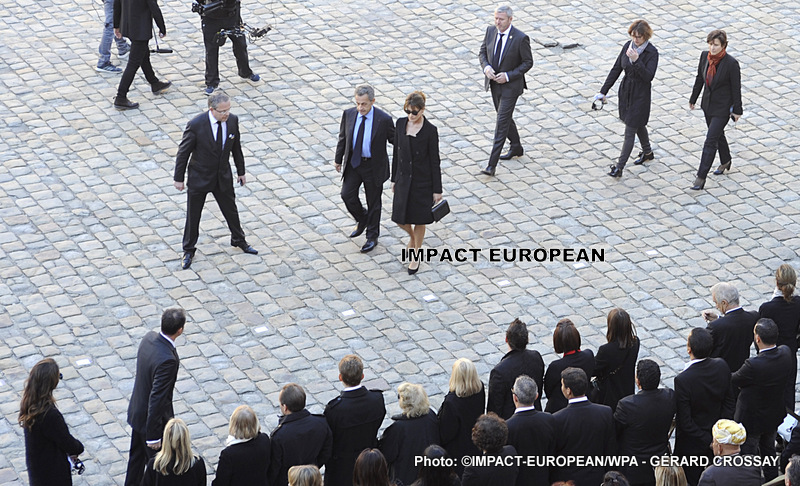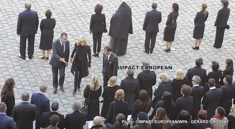 Côté politique, plusieurs membres du gouvernement étaient présents – parmi lesquels Jean-Michel Blanquer, Gérald Darmanin, Sophie Cluzel, Françoise Nyssen, ainsi que les anciens présidents François Hollande et Nicolas Sarkozy. Ce dernier est venu accompagné de son épouse Carla Bruni-Sarkozy, tandis que François Hollande est venu seul. Marine Le Pen était également au rendez-vous pour dire adieu au chanteur. Tout comme d’anciens ministres comme Bernard Cazeneuve, Bernard Kouchner, Michèle Alliot-Marie ou encore la maire de Paris Anne Hidalgo.