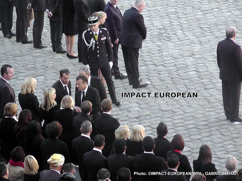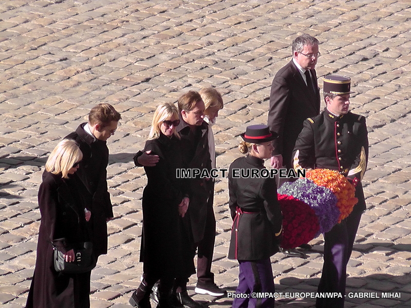Autour du cercueil recouvert du drapeau français, la veuve du chanteur, ses enfants, quelques 200 personnalités du monde du spectacle, des politiques étaient présents. Le Président Emmanuel Macron, avait à ses côtés le Premier ministre arménien Nikol Pachinian et le président Armen Sarkissian.