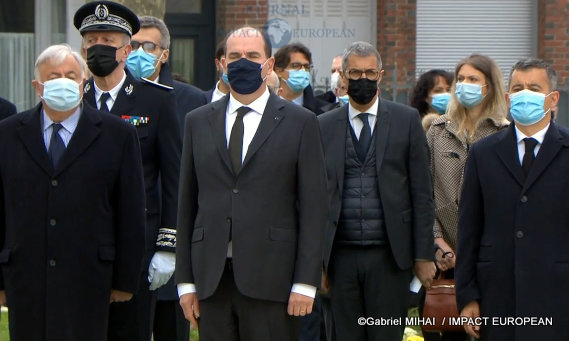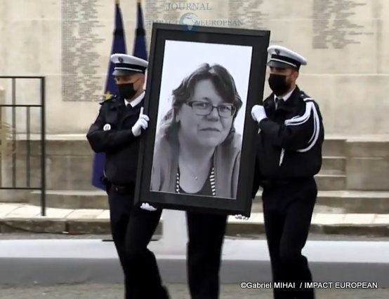 La cérémonie a eux lieu sur une esplanade proche du commissariat où l’assaillant a surgi et l’a tuée de deux coups de couteau, dans le sas d’entrée de l’hôtel de police.