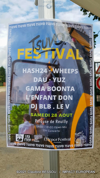 Au programme de ce festival de musique 2021 en plein air, on a pu apprécier le groupe « Tsuvo Studio » sur la Pelouse de Reuilly en Open-Mic et Concerts. Ce sont des artistes passionnés qui se déplacent dans toute la France avec leur caravane « Mobil’Art Studio », un studio d’enregistrement mobile et polyvalent. Leur projet artistique participe à l’amélioration du cadre de vie, il s’inscrit dans une démarche de médiation artistique entre musiciens passionnés et habitants. Leur contexte d’intervention est l’éducation culturelle avec des artistes émergents du Rock, Hip-Hop et Street Art…