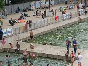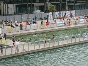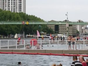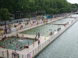 Alors que jusqu’ici depuis1923, il était interdit de se baigner dans la Seine sous peine d’amende, la mairie de Paris a décidé d’offrir aux Parisiens et aux vacanciers la possibilité de jouir des plaisirs de la baignade en eau fraiche sans traitement chimique ni biologique, un filtre empêche les feuilles, les poissons et tout autre déchet de pénétrer dans le bassin, des capteurs contrôlent la qualité de l’eau tous les jours. Suite à cette opération, Paris envisage d’aménager de la même façon le lac Daumesnil à Vincennes en 2019 et pourquoi pas la Seine après 2024 si les JO se font à Paris.