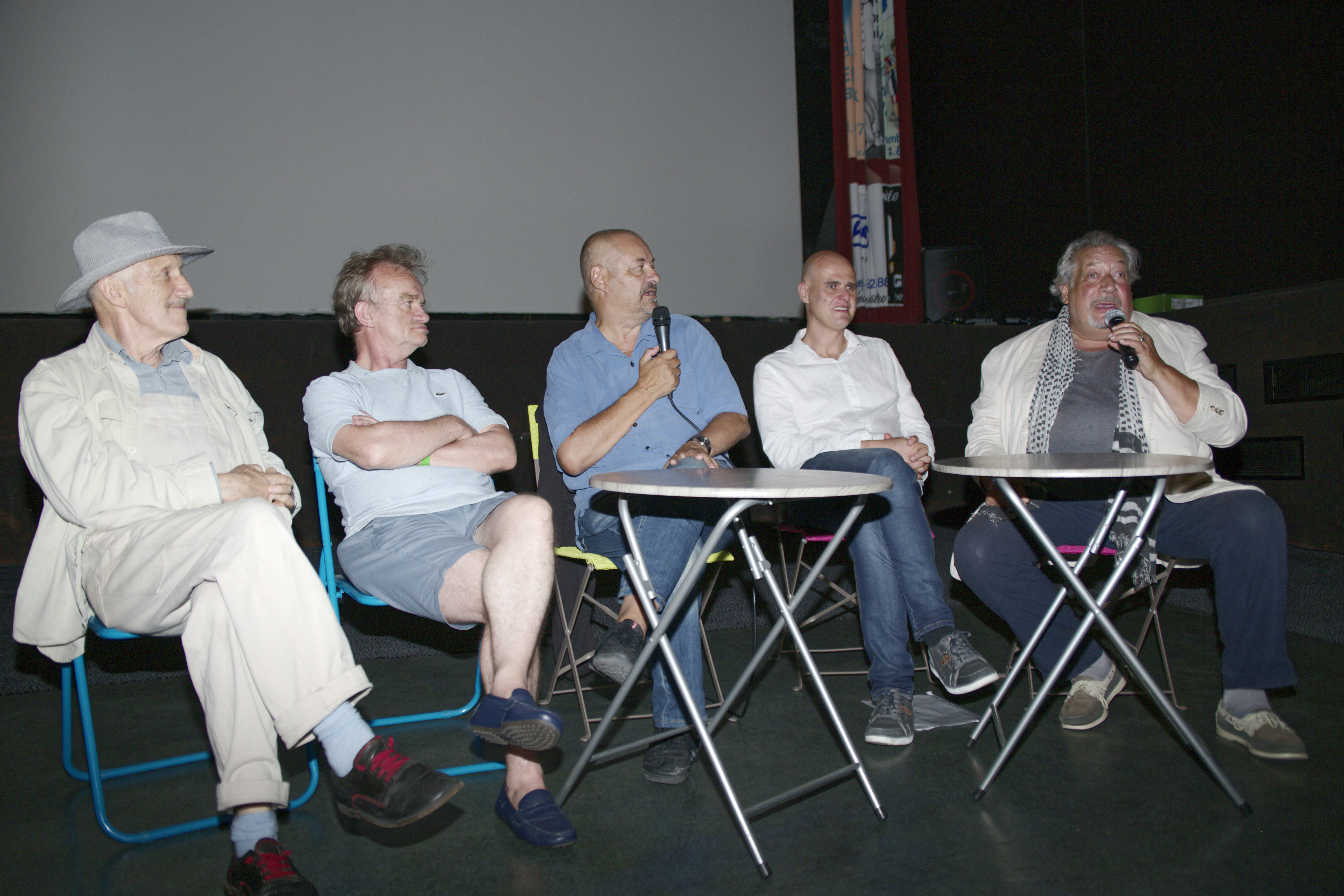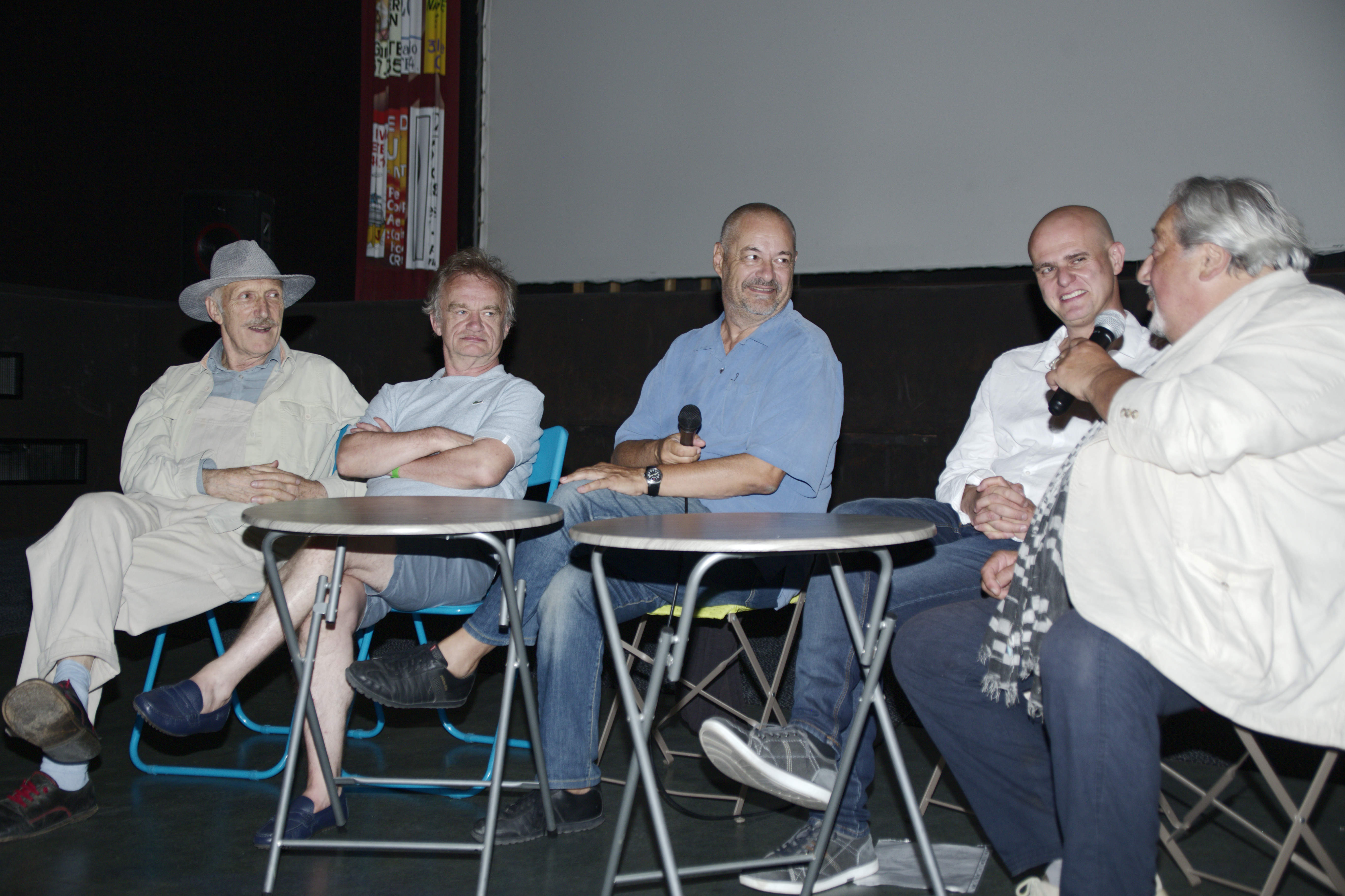 Tour de Table de Jean-Pierre Jeunet, Jean-Claude Dreyfus, Dominique Pinon, Rufus, invités à la 2nde édition du Sunsète Festival du Film de Sète avant la projection de Delicatessen à 21h au Comoedia, 2017 en compagnie de Laurent Mesguich président du Sunsète, 2017