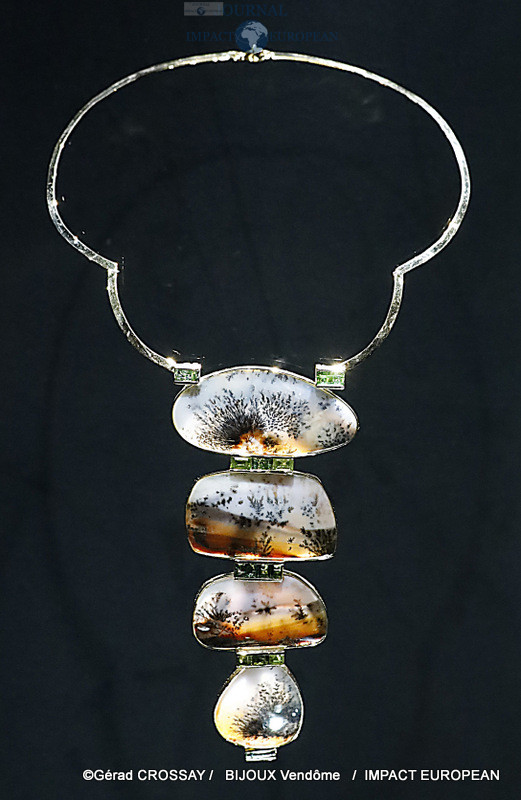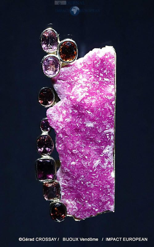 Les 130 bijoux exposés, issus de collections privées et publiques, montrent toute l’originalité de sa création et son amour des minéraux. C’est aussi un catalogue de ses rencontres avec des personnalités dont Vasarely, Kijno, Paul-Emile Victor ou l’académicien Roger Caillois.