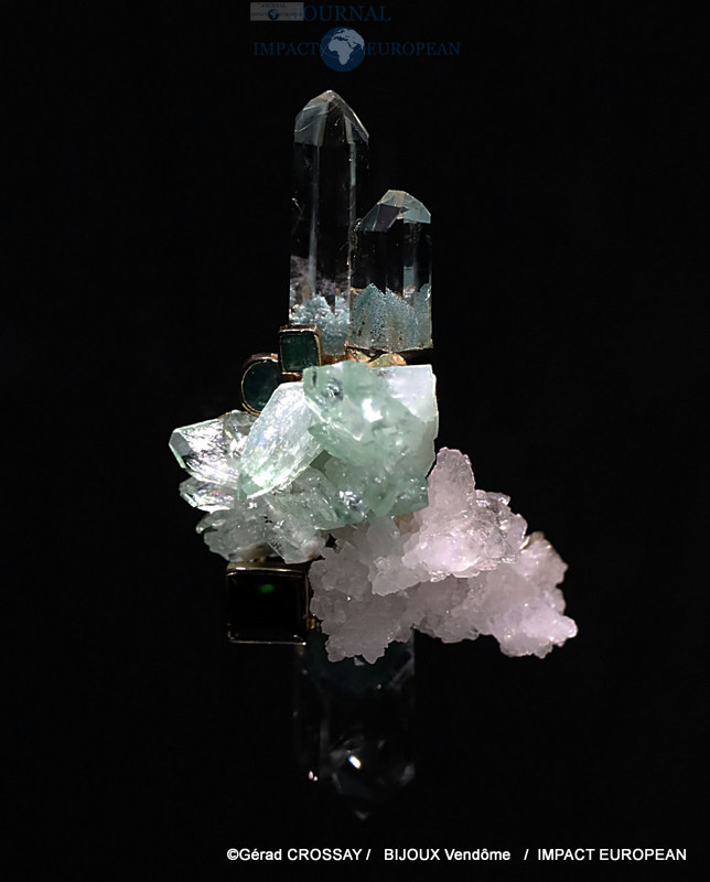 Une première partie s’adresse au renouveau du bijou. Articulée autour de l’épée de l’académicien Roger Caillois, la seconde partie évoque l’univers intime de l’artiste. Le joaillier s’y inspire de la beauté des minéraux (agates, quartz fantôme, tourmaline, quartz rutilé, apophyllite verte ou cobaltocalcique). La dernière partie montre une autre manière de penser le bijou.