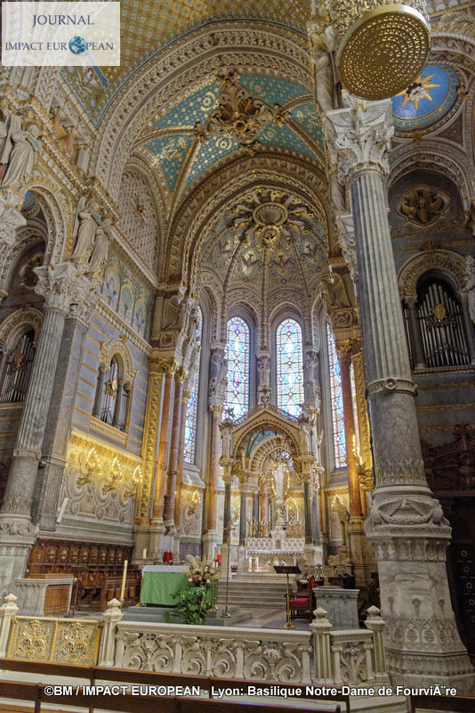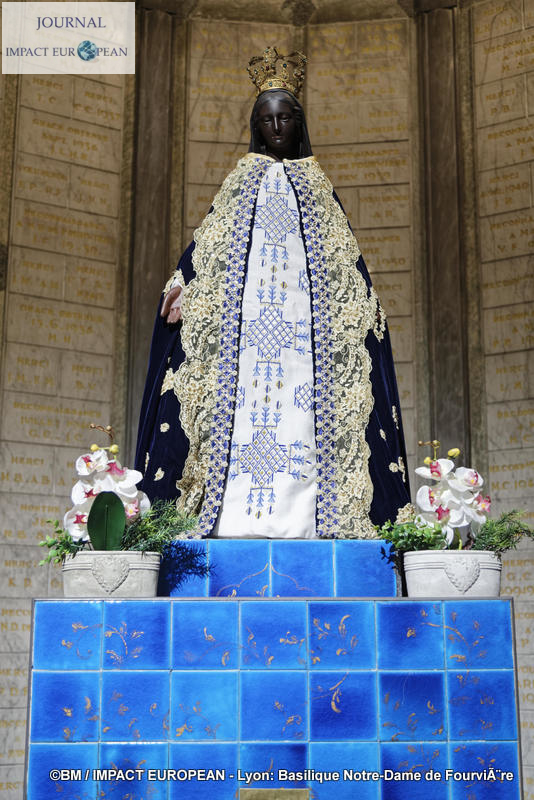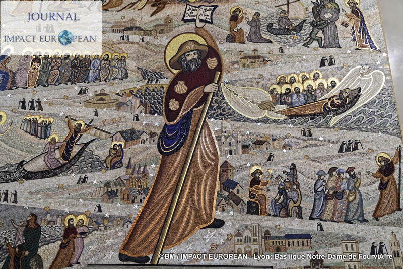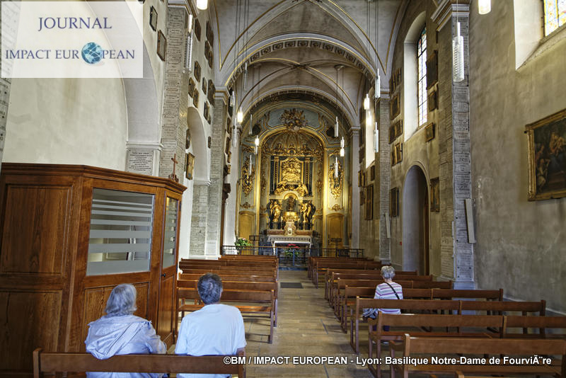 Située sur la colline de Fourvière dont le nom est issu du latin « Forum vetus » (vieux forum), lieu choisi par les romains pour la fondation de Lyon en 43 avant J.-C, la Basilique Notre-Dame de Fourvière, érigée sur l’emplacement de la Chapelle St Thomas construite en 1168 est l’un des monuments les plus connus de la ville de Lyon. Classée au patrimoine mondial de l’UNESCO et référencée premier site touristique de la région Rhône-Alpes Auvergne, elle se distingue par son apparence de citadelle à l’extérieur et ses mosaiques retraçant l’histoire de la Vierge, ses vitraux et ses marbres à l’intérieur. La crypte, dédiée à St-Joseph abrite une statue de « St-Joseph à l’Enfant » de Fabish et des vitraux de Bégule reprenant les symboles de l’Eucharistie. A droite de la basilique, une chapelle dédiée à la Vierge, construite au XIIème siècle reste le cœur historique et religieux. Fondée en 1192, démolie en partie en 1562 au cours des Guerres de Religion, puis reconstruite, ses murs se parent dès la fin du XVIIème siècle d’ex-voto peints sur toile. A quelques mètres de là la Chapelle St Thomas dédiée à St Thomas de Canterbury mort en martyre en 1170, est un lieu de prières et d’adoration du St Sacrement.