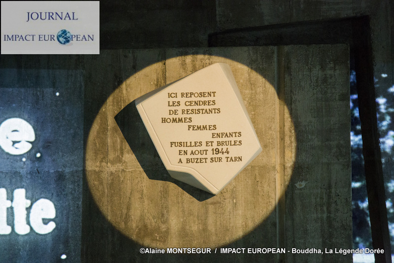 16. Monument à la gloire de la Résistance, inauguré en 1971, renferme de la terre des différents camps de concentration nazis en mémoire des très nombreux résistants déportés à Mauthausen, Ravensbrück, Auschwitz ou Dachau. Une urne contenant les cendres des 54 résistants fusillés et brûlés à Buzet-sur-Tarn le 17 août 1944 est conservée dans l’une des cryptes, parvis des femmes de la Résistance.