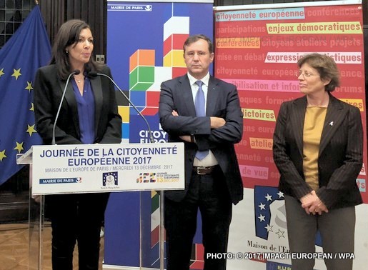 Le 13 décembre est la date anniversaire du drapeau européen créé en 1955. A cette occasion, Anne Hidalgo s’est rendue dans les nouveaux locaux de la maison de l’Europe , avenue de Villiers dans le 17ème arrondissement de Paris afin d’annoncer la création d’une journée de la citoyenneté européenne.